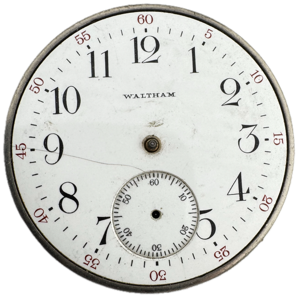 Antique 12s 1913 Waltham 15 Jewel Mechanical Pocket Watch Movement 220 USA Product Description Item: Pocket Watch Movement Brand: Waltham Movement: Mechanical Production Year: 1913 Country: USA Jewels: 15 Jewel Gender: Men's Grade: 220 Size: 12s Product Measurements Diameter: 39mm Product Condition Overall Condition: Poor, overall condition for its age. Functions: Not running, the Balance staff is broken. Dial: The dial has hairline crack(s) on it. Hands: It is missing all the hands.