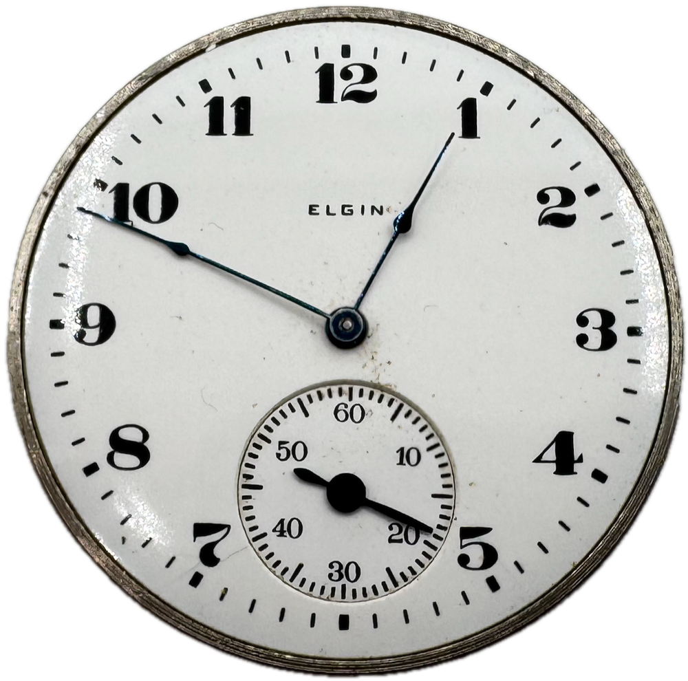 Antique 12s 1922 Elgin 7 Jewel Mechanical Hunter Pocket Watch Movement 301 USA Product Description Item: Pocket Watch Movement Brand: Elgin Movement: Mechanical Production Year: 1922 Country: USA Jewels: 7 Jewel Gender: Men's Grade: 301 Size: 12s Product Measurements Diameter: 39.5mm Product Condition Overall Condition: Fair, overall condition for its age. Functions: Not running but the balance complete is in good condition. Dial: The dial has spotting.