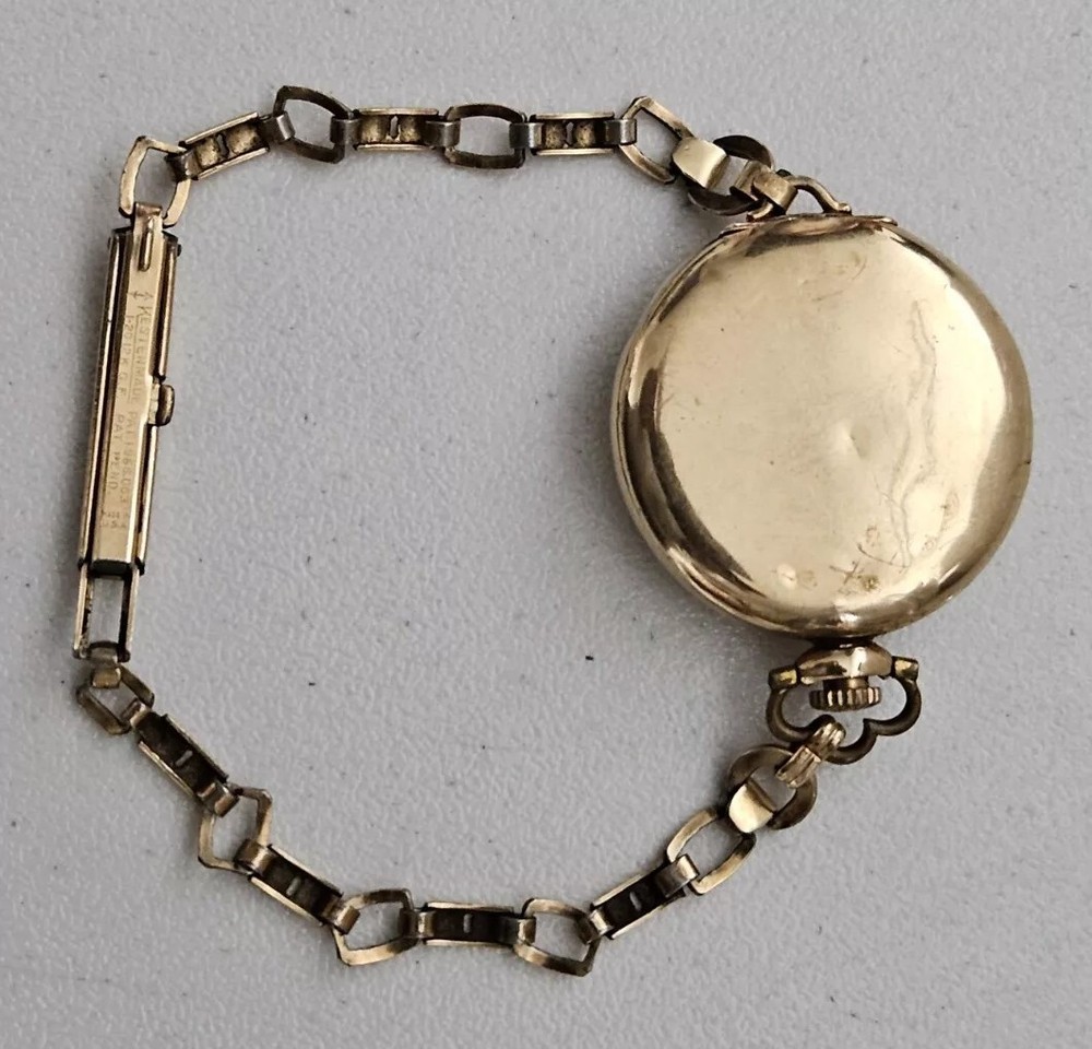 Up for sale is an Antique 14K Yellow Gold Roy Case With Elgin Movement Wrist/Pocket Watch. Watch case measures 27mm. Total weight is 21.6 Grams. Kestenmade Gold Filled adjustable band. Watch is not working. Case shows some denting and rear hinge is split (pictured). Please feel free to ask questions. Thank you. From a smoke and pet free environment E-213