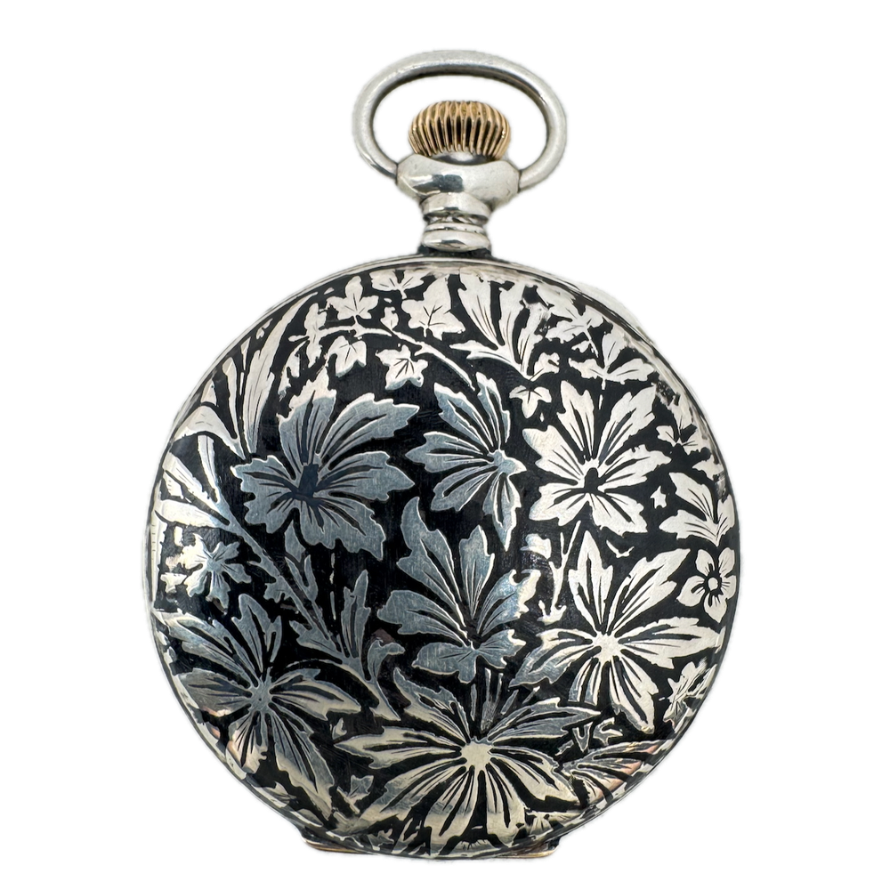 Antique 16 Size Keystone Niello Hunter Pocket Watch Case Sterling Silver USA