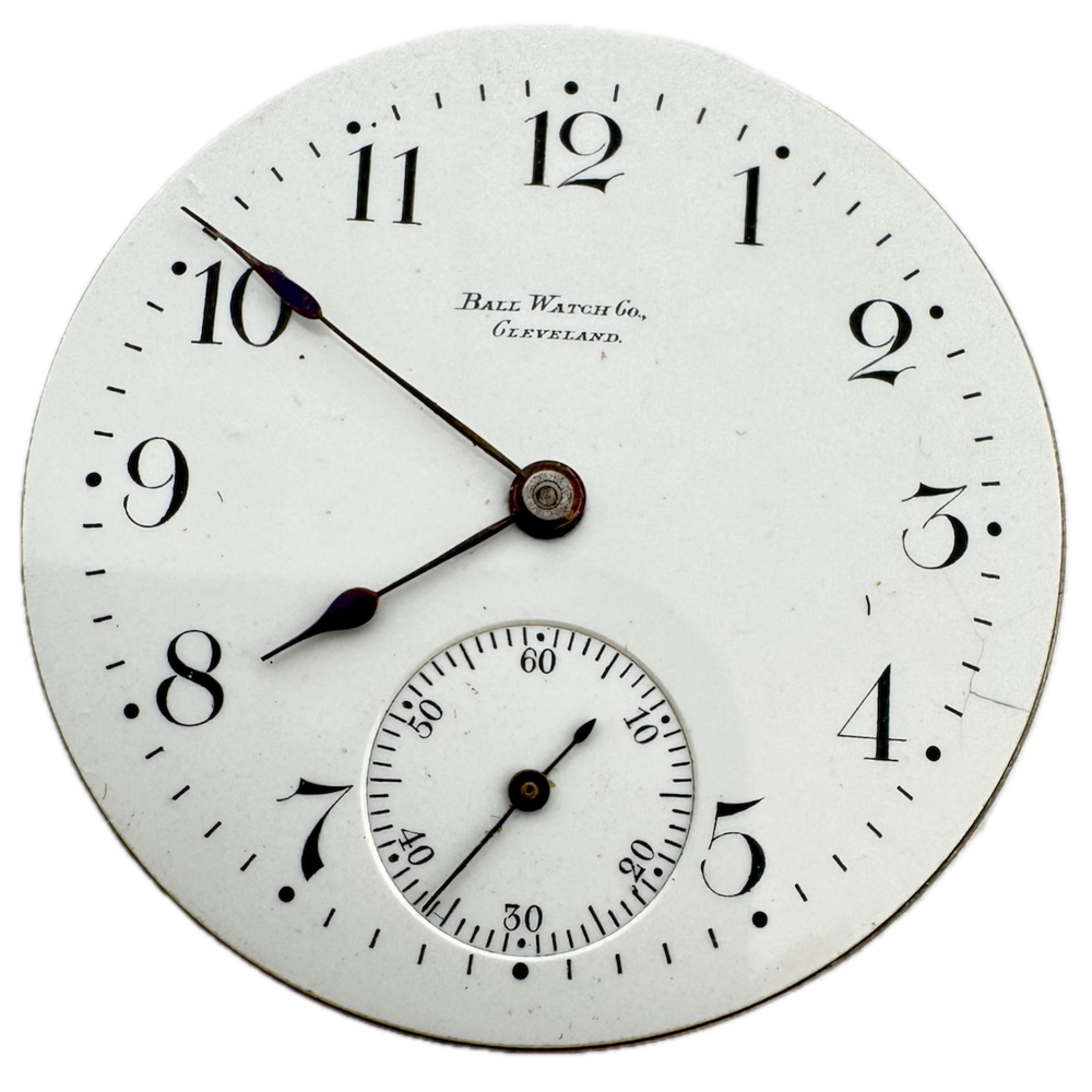 Antique 16s 1902 Ball Commercial Standard 15J Pocket Watch Movement Waltham USA Product Description Item: Pocket Watch Movement Brand: Ball Model: Commercial Standard Movement: Mechanical Production Year: 1902 Country: USA Jewels: 15J Gender: Men's Grade: Waltham Size: 16s Product Measurements Diameter: 43mm Product Condition Overall Condition: Fair, overall condition for its age. Functions: Not running, the Balance staff is broken. Dial: The dial has hairline crack(s) on it. Hands: There is discoloration on the hands.