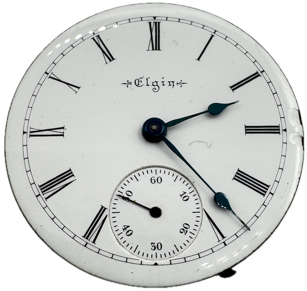 Antique 18s 1900 Elgin 7 Jewel Mechanical Hunter Pocket Watch Movement 207 USA Product Description Item: Pocket Watch Movement Brand: Elgin Movement: Mechanical Production Year: 1900 Country: USA Jewels: 7 Jewel Gender: Men's Grade: 207 Size: 18s Product Measurements Diameter: 45.5mm Product Condition Overall Condition: Fair, overall condition for its age. Functions: Running, but may be in need of service. This means, it can run unreliably, start or stop and timekeeping is not guaranteed. Dial: The dial has dents. Hands: There is discoloration on the hands.