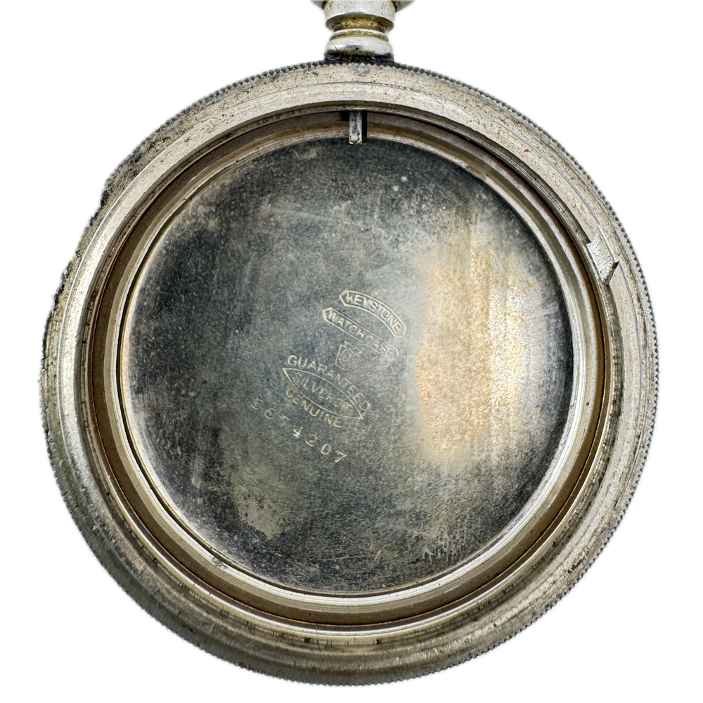 Antique 18s Keystone Coin Edge Open Face Pocket Watch Case Silveroid USA Product Description Item: Pocket Watch Case Brand: Keystone Model: Coin Edge Case Material: Silveroid Country: USA Gender: Unisex Product Measurements Inside Diameter: 46mm Outside Diameter: 55mm Product Condition Overall Condition: Fair, overall condition for its age. Case: There are scratches on the case. Crystal: It is missing the crystal.