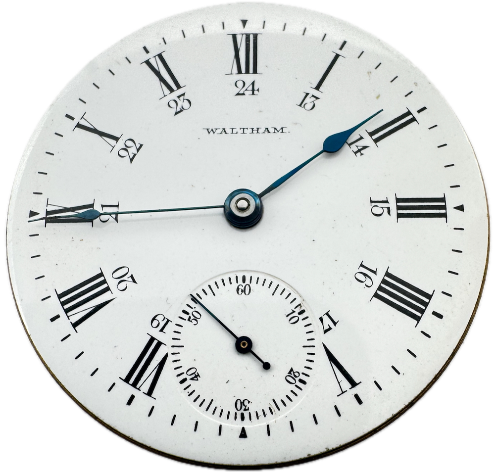 Antique 18s 1904 Waltham Canadian Dial Mechanical Pocket Watch Movement 1 USA Product Description Item: Pocket Watch Movement Brand: Waltham Model: Canadian Dial Movement: Mechanical Production Year: 1904 Country: USA Jewels: 7 Jewel Gender: Men's Grade: 1 Size: 18s Product Measurements Diameter: 34.5mm Product Condition Overall Condition: Fair, overall condition for its age. Functions: Not running, the Balance staff is broken. Dial: The dial is in good condition.