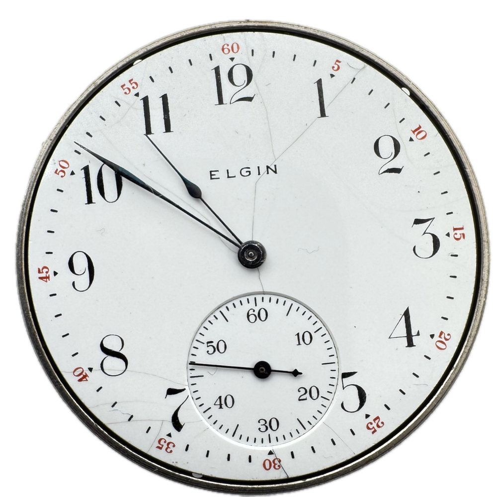 Antique 12s 1905 Elgin 15 Jewel Mechanical Pocket Watch Movement 315 USA Product Description Item: Pocket Watch Movement Brand: Elgin Movement: Mechanical Production Year: 1905 Country: USA Jewels: 15 Jewel Gender: Men's Grade: 315 Size: 12s Product Measurements Diameter: 39.5mm Product Condition Overall Condition: Fair, overall condition for its age. Functions: Running, but may be in need of service. This means, it can run unreliably, start or stop and timekeeping is not guaranteed. Dial: The dial has hairline crack(s) on it. Hands: There is discoloration on the hands.
