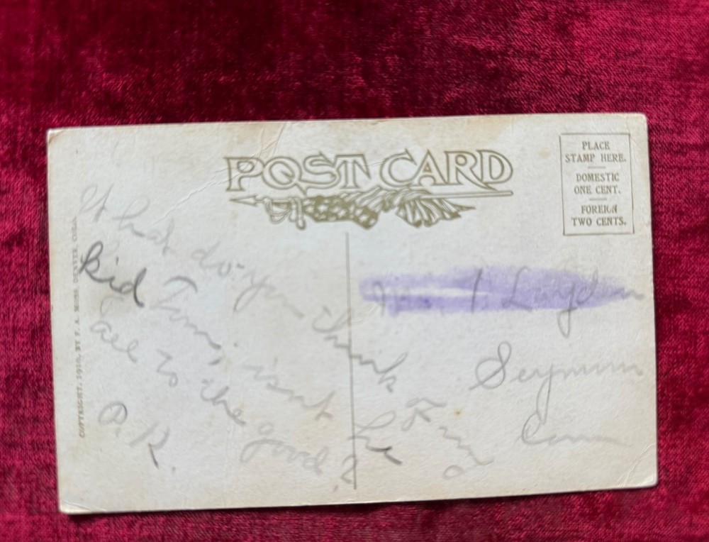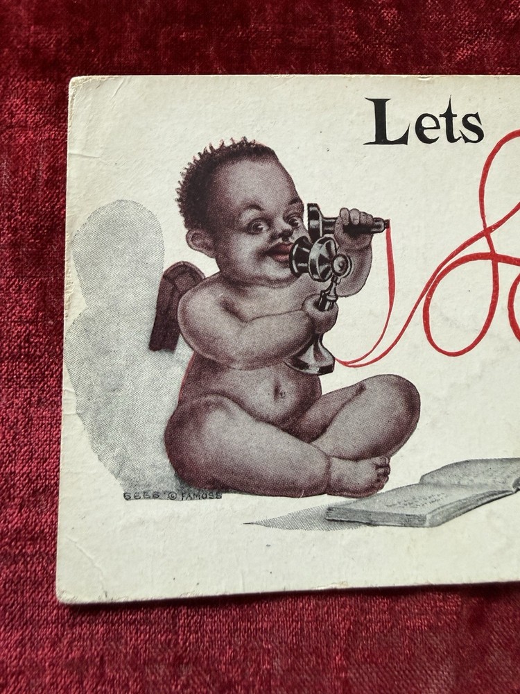 Neat, and unique, antique FA Moss, Valentine Cupid postcard. It’s been used but unposted. It’s in good, used condition with some flaws. Offering free USPS Ground Advantage shipping! It’s marked F.A. Moss made in Denver Colorado, on the back, left side. Also, please note, there’s a purple stain on the back, near the pencil writing. It measures 3” 3/8 wide by 5” 5/8 long. Also, please note, there’s some paper curling on some corners, and creasing on some of the sides of the postcard. Selling as is/as found. A wonderful new addition to your antique Valentine, Americana/ephemera/postcard collection. Thanks for your consideration!