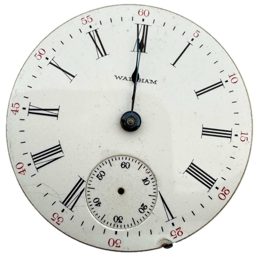 Antique 18 Size 1912 Waltham 7 Jewel Hunter Pocket Watch Movement 18 USA Product Description Item: Pocket Watch Movement Brand: Waltham Movement: Mechanical Production Year: 1912 Country: USA Jewels: 7 Jewel Gender: Men's Grade: 18 Size: 18 Size Product Measurements Diameter: 45.5mm Product Condition Overall Condition: Fair, overall condition for its age. Functions: Not running as it is for parts Dial: The dial has chips on it. Hands: It is missing the second hand. The hands have rust on them.
