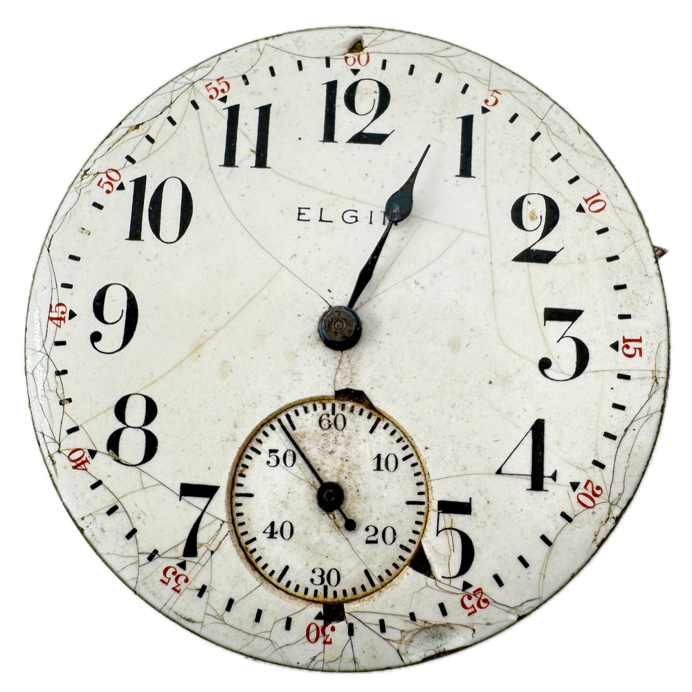 Antique 16s 1915 Elgin 15 Jewel Mechanical Pocket Watch Movement 313 USA Product Description Item: Pocket Watch Movement Brand: Elgin Movement: Mechanical Production Year: 1915 Country: USA Jewels: 15 Jewel Gender: Men's Grade: 313 Size: 16s Product Measurements Diameter: 43mm Product Condition Overall Condition: Poor, overall condition for its age. Functions: Not running but the balance complete is in good condition. Dial: The dial is in rough condition. Hands: It is missing the minute hand. There is discoloration on the hands.