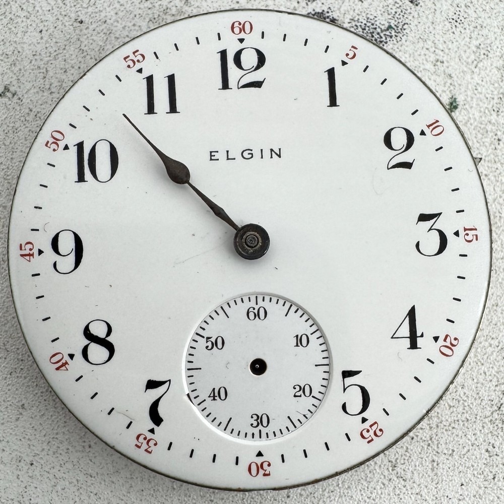 Antique 16s 1915 Elgin 15 Jewel Mechanical Pocket Watch Movement 313 USA Product Description Item: Pocket Watch Movement Brand: Elgin Movement: Mechanical Production Year: 1915 Country: USA Jewels: 15 Jewel Gender: Men's Grade: 313 Size: 16s Product Measurements Diameter: 42mm Product Condition Overall Condition: Fair, overall condition for its age. Functions: Not running as it is for parts Dial: The dial is in good condition. Hands: It is missing minute and second hand. There is discoloration on the hands.