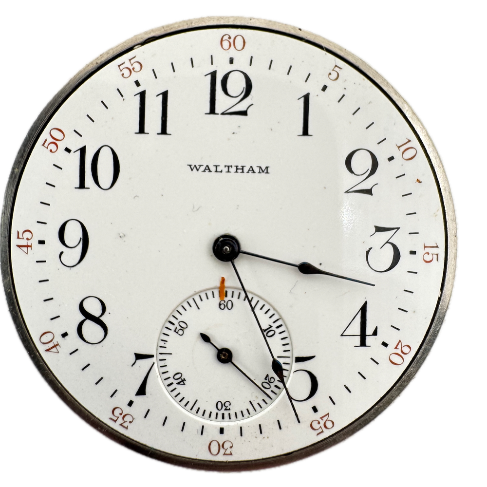 Antique 12s 1917 Waltham 7 Jewel Mechanical Pocket Watch Movement 210 USA Product Description Item: Pocket Watch Movement Brand: Waltham Movement: Mechanical Production Year: 1917 Country: USA Jewels: 7 Jewel Gender: Men's Grade: 210 Size: 12s Product Measurements Diameter: 40mm Product Condition Overall Condition: Good, overall condition for its age. Functions: Running, but may be in need of service. This means, it can run unreliably, start or stop and timekeeping is not guaranteed. Dial: The dial has scratches on it. Hands: There is discoloration on the hands.