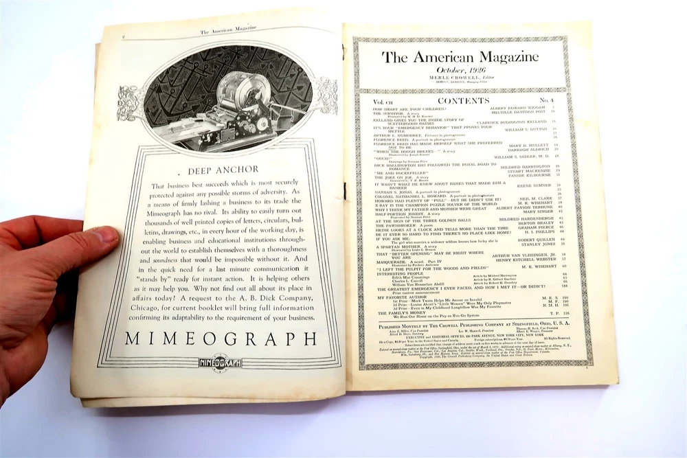 Contributors: N/a Country/Region of Manufacture: United States Language: English Modified Item: No ISSN: 1926 Year Published: 1926 Modification Description: n/a Publication Frequency: Monthly Bundle Description: n/a Format: Physical Custom Bundle: No Features: Illustrated Topic: Romance, Fashion, Women's Interest, News, Current Events, Famous People Subject: Celebrity Month: October Publication Month: October Publication Year: 1926 Personalized: No Special Attributes: Illustrated Publication Name: The American Magazine Publisher: Ideal Genre: Celebrity, Lifestyle, News, Women