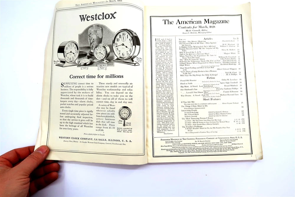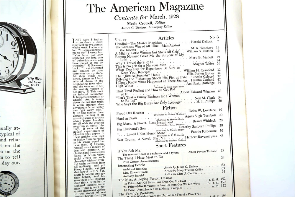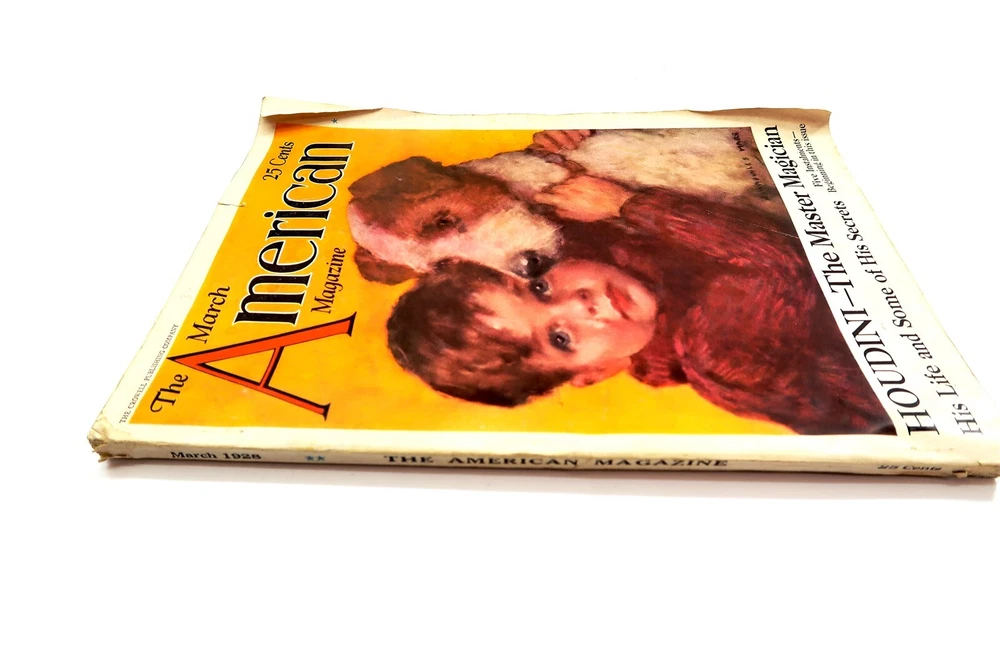 Antique 1928 THE AMERICAN MAGAZINE from March ~ Houdini Master Magician cover