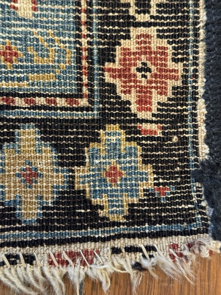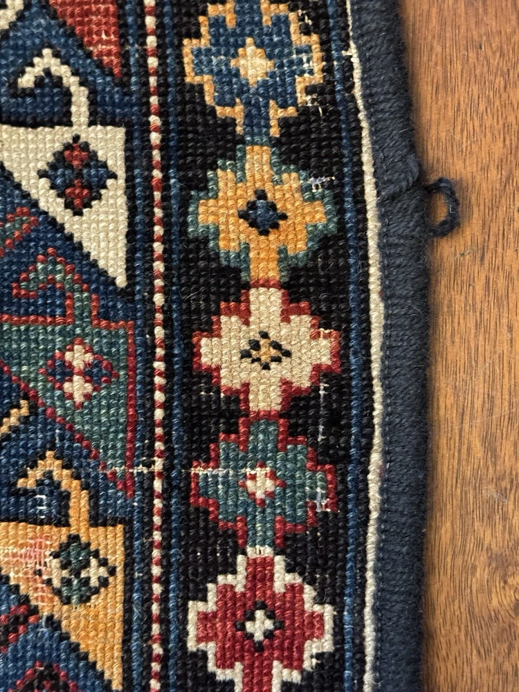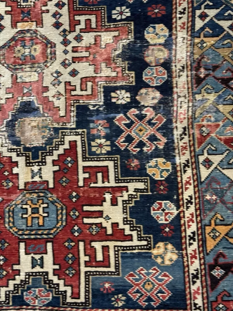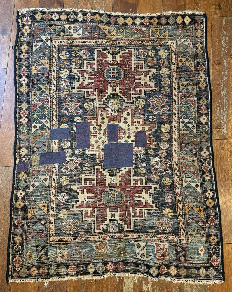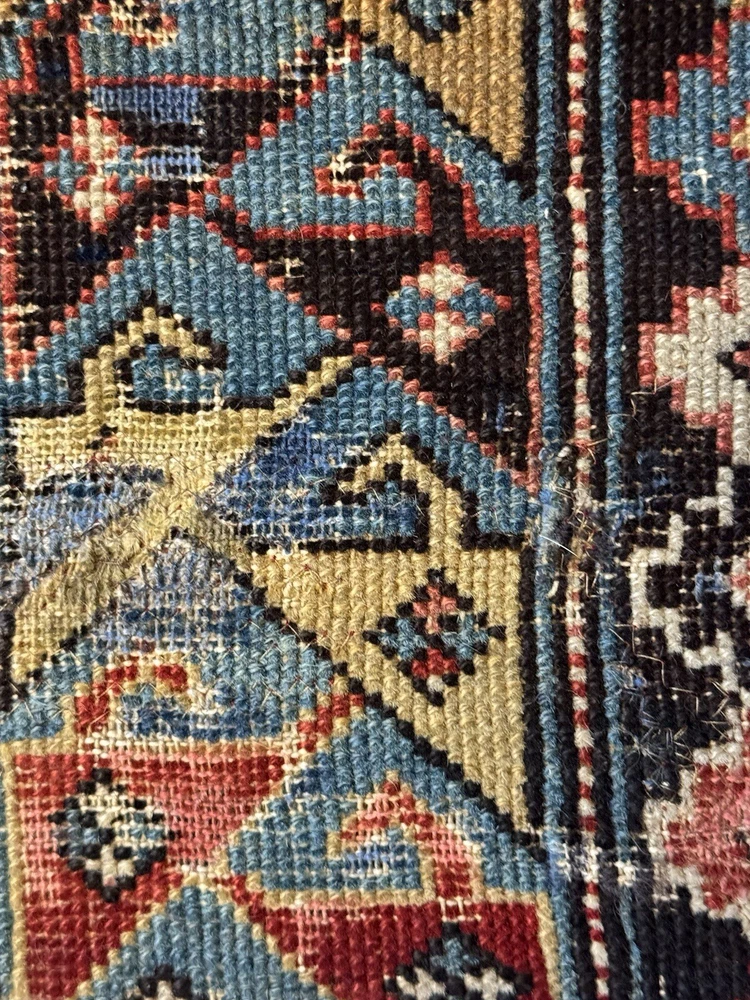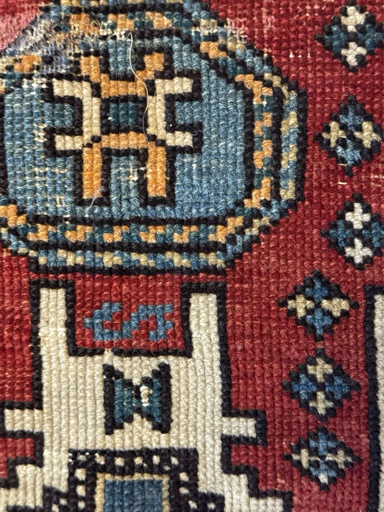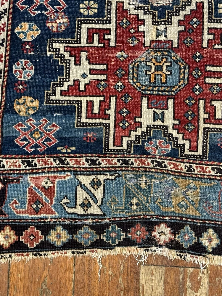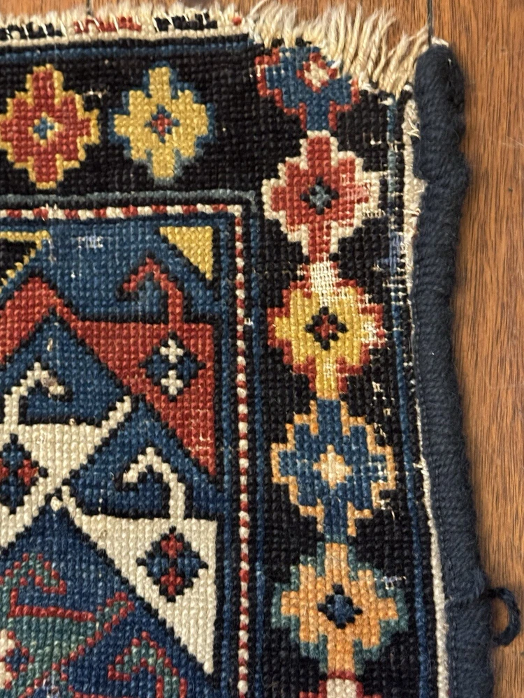 Brand: Handmade Culture: Caucasian Care Instructions: Avoid Harsh Chemicals Color: Multi color Original/Licensed Reproduction: Original Item Width: 37" Seller Notes: “There are numerous repairs, soiled and worn areas. An area looks like it was reattached as well.” Handmade: Yes Type: Rug Country/Region of Manufacture: Azerbaijan Room: Any Room, Bedroom, Conservatory, Foyer, Guestroom, Home Office/Study, Living Room, Lounge Department: Teens, Adult Production Technique: Knotted Item Length: 49" Features: Eco Friendly, For Chairs with Wheels (Living and Commercial Area), Hand-Knotted, Noise-Reducing, Self-Laying, Suitable for Floor Heating Material: 100% Wool Pile Height: Low Pattern: star geometric Shape: Rectangle Size: 37" x 49" Era: Victorian (1837-1900) Regional Design: Kazak Weave: Hand-Knotted Theme: Star Style: Tribal Time Period Manufactured: 1850-1899