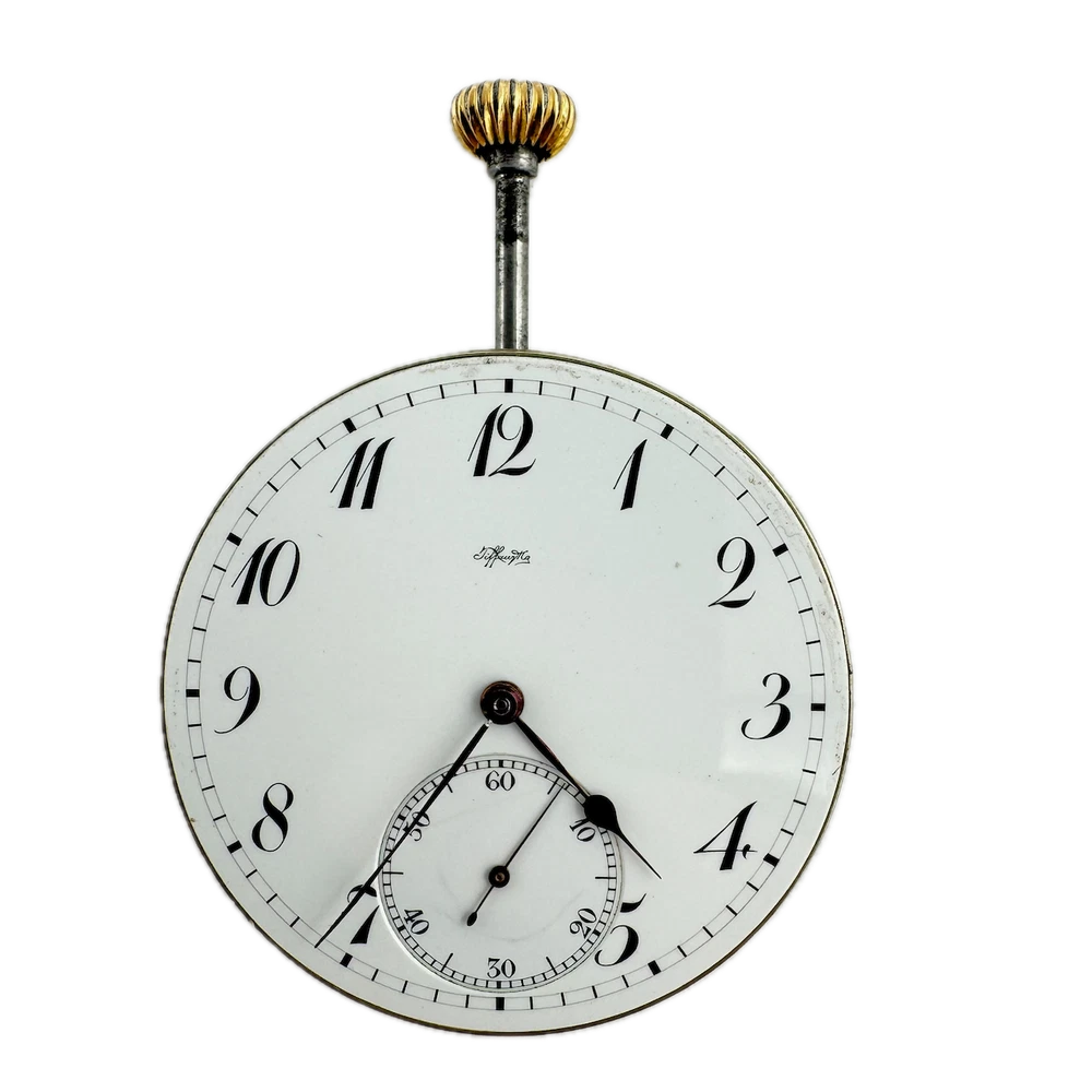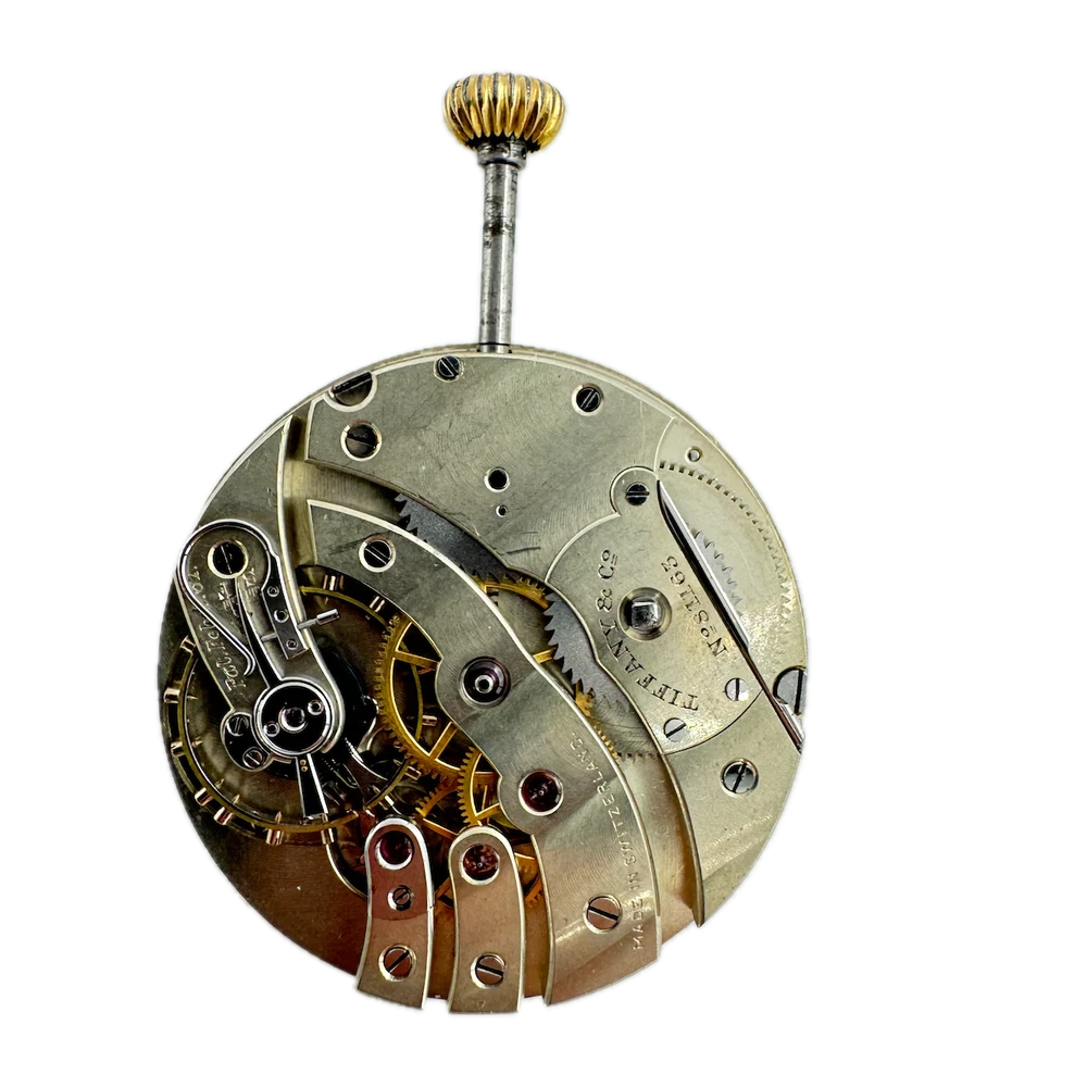 Antique 39mm Tiffany & Co. Mechanical Pocket Watch Movement Agassiz Swiss Product Description Item: Pocket Watch Movement Brand: Tiffany & Co. Movement: Mechanical Country: Swiss Gender: Men's Caliber: Agassiz Size: 39mm Product Measurements Diameter: 39mm Product Condition Ok, overall condition for its age. Running but it will need repaired. This means, it can run unreliably, start or stop and timekeeping is not guaranteed. There is light discoloration on the dial. The stem comes out when you try to set it.