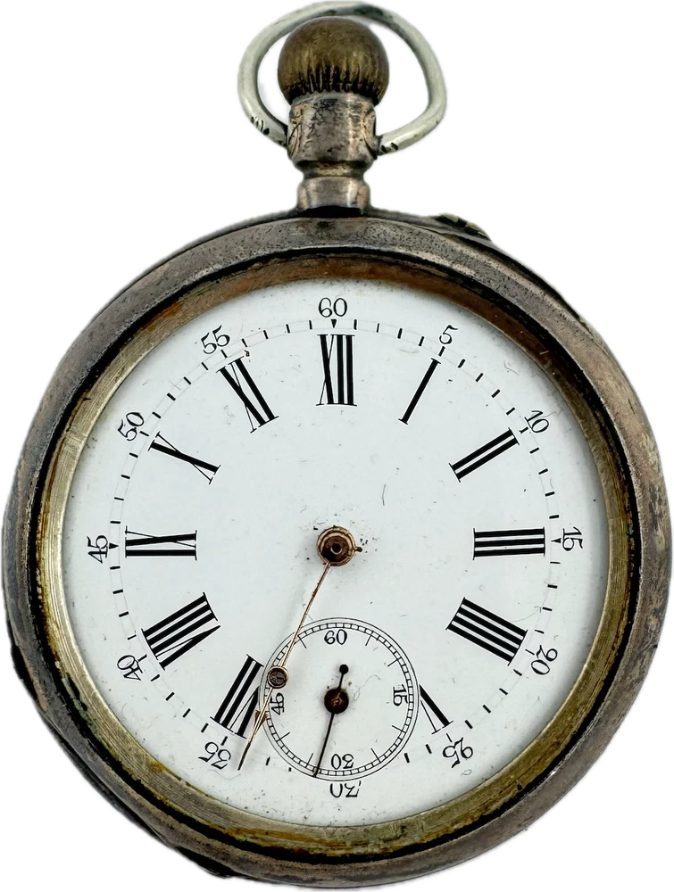 Antique 47mm Remontoir Key Wind Cylinder Escapement Pocket Watch .800 Silver Product Description Item: Pocket Watch Brand: Remontoir Movement: Key Wind Cylinder Escapement Case Material: .800 Silver Gender: Unisex Size: 47mm Product Measurements Diameter: 47mm Product Condition Ok, overall condition for its age. Not running, the balance complete is good though. There are dents and wear on the case. It is missing the crystal. It is missing the hour hand.