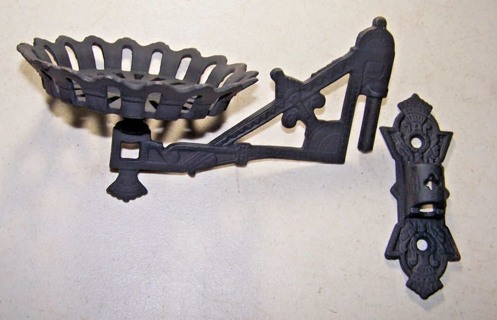 Material:Cast IronCountry/Region of Manufacture:United StatesStyle:VictorianColor:BlackPower Source:KeroseneBrand:AntiqueAntique:YesTime Period Manufactured:1850-1899Item Height:9 in.Primary Material:Cast IronFeatured Refinements:Cast Iron Wall BracketModified Item:NoItem Diameter:11 inSeller Notes:“Very good condition.No damage,rust or repairs..Very good detail.”Vintage:YesType:Oil Lamp