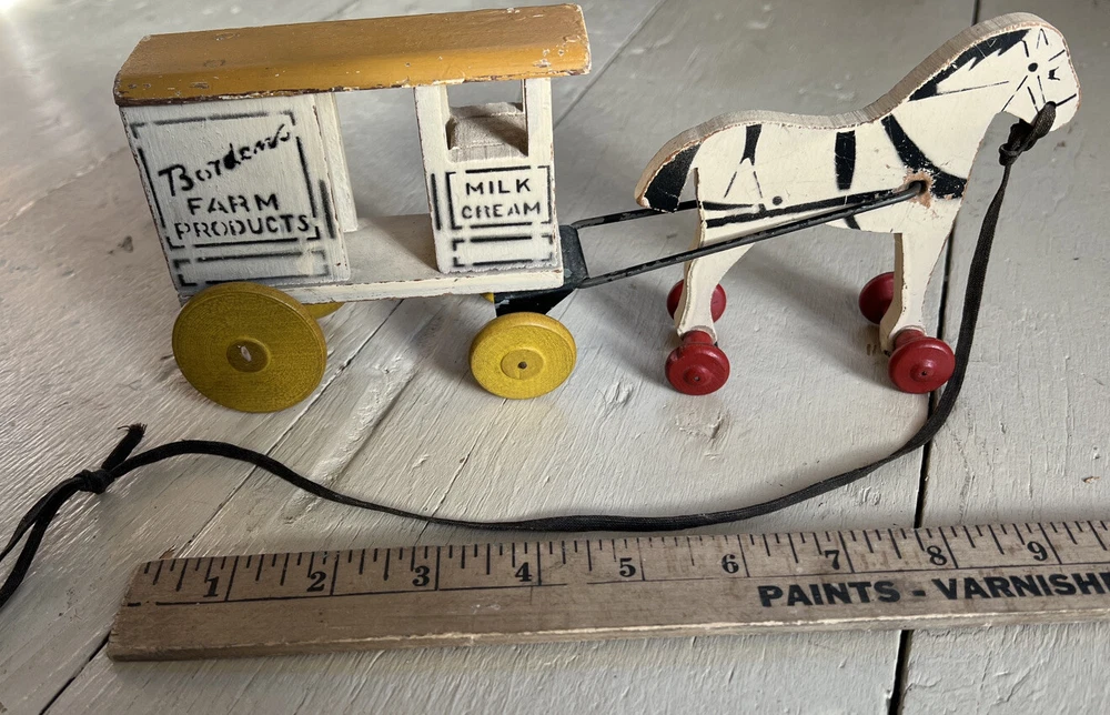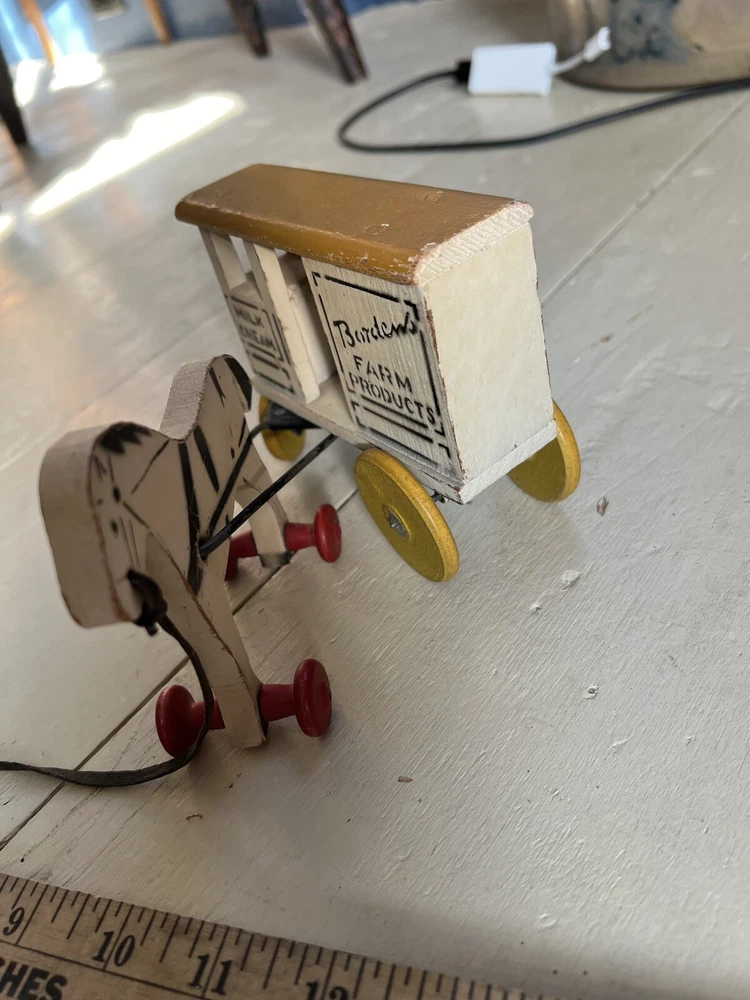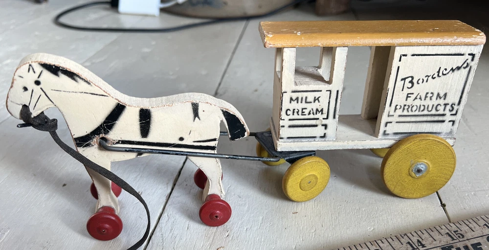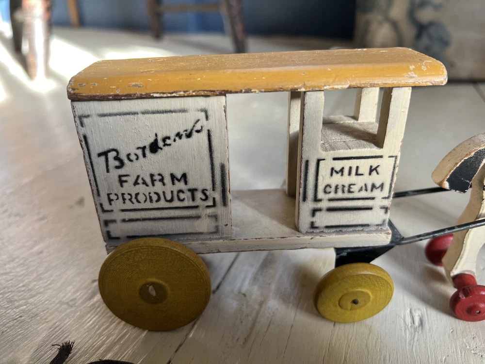 Antique Advertising Bordens milk Cream horse wagon wood toy