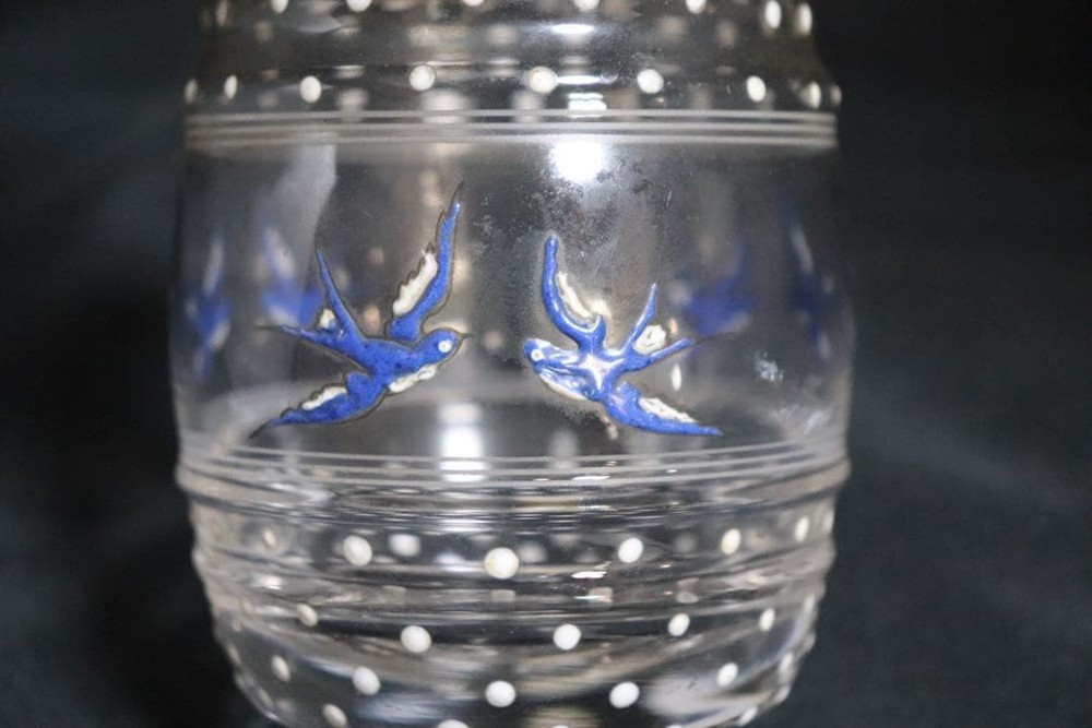 .Antique Art Deco Vaseline Glass Jar Enamel Swallow Bird Decor JP.Fantasy Art Deco Elegance: Antique Uranium Glass Enamel Flask Immerse yourself in the refined beauty of the early 20th century with this stunning Art Deco uranium glass vial. With its captivating hand-painted enamel swallow motif, this piece is a sublime example of the geometric modern aesthetic that defined the 1920s and 1930s. Under UV light, the glass glows a vibrant neon green, revealing the hallmarks of authentic antique Vaseline glass! A swallow, a symbol of good fortune and the arrival of spring, is delicately depicted against the shining glass, creating a poetic contrast between nature and industrial art. This vial (formerly an ink bottle and cosmetic bottle) embodies the urban chic of the Paris Universal Exhibition era. Simply placing it on your desk or dressing table will transport you to an era of luxury and artistic revolution. As an avid collector of rare Japanese and European glass, I am captivated by the delicate soul of this piece. Treasured for decades, its subtle "traces of history" only enhance its authentic vintage character. A must-have for any collector who appreciates the precision of Art Deco and the magical luminescence of uranium glass. Product details Size: Approximately 2.09 x 2.09 x 4.06 inches (approximately 5.3cm x 5.3cm x 10.3cm) Weight: approx. 0.25 kg Material: Uranium glass (Vaseline glass), enamel Style: Art Deco swallow crest Condition: Beautiful antique condition. There are very slight nicks (small chips) on the edges, consistent with age. Please enlarge the photos to see details. Shipping: We will professionally package this delicate treasure in bubble wrap to ensure it arrives safely to your home! Add the brilliance of the Roaring Twenties to your collection! 🔵1 inch = 2.54 cm (25.4 mm) Mow Motor Law NIPPON Selected items shipped from Japan NOTES Please check the photos carefully before purchase. We answer your questions promptly. Feel free to contact us anytime! You can add multiple products to the cart and request combined shipping. Please contact us before payment. All items we handle are products originally released in Japan. Please make sure your device or system is compatible with Japanese versions. PAYMENT POLICY Please complete payment within 96 hours after purchase or winning the bid. ❶ For customers shipping to the USA DDP: If the total sales price is under $2,500 , we will cover the customs duties. Duties are included in the item price and shipping cost, so you do not need to pay any additional duty on delivery. DDU: If the total sales price is over $2,500 , the customer is responsible for customs duties. Duties will be charged separately by customs in addition to the item price and shipping cost. Payment is the customer's responsibility. ❷ For customers shipping to addresses outside the USA DDU: The customer is responsible for customs duties. Duties may be charged separately by customs in addition to the item price and shipping cost. Payment is the customer's responsibility. We do not mark merchandise values below value or mark items as gifts. We declare the actual item price per unit, excluding shipping cost. SHIPPING POLICY Handling time: up to 10 business days after payment is confirmed. Shipping method: International express shipping with tracking from Japan. Estimated delivery time: approximately 13–20 days , depending on your region and customs conditions. RETURN POLICY You can return the item within 60 days after receiving it. Return shipping cost will be the buyer’s responsibility . CONTACT DETAILS If you have any questions or problems, please contact us first before opening a case. We will do our best to resolve any issue and make sure you are satisfied with your purchase.