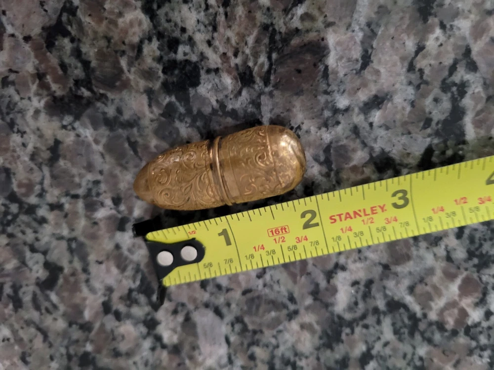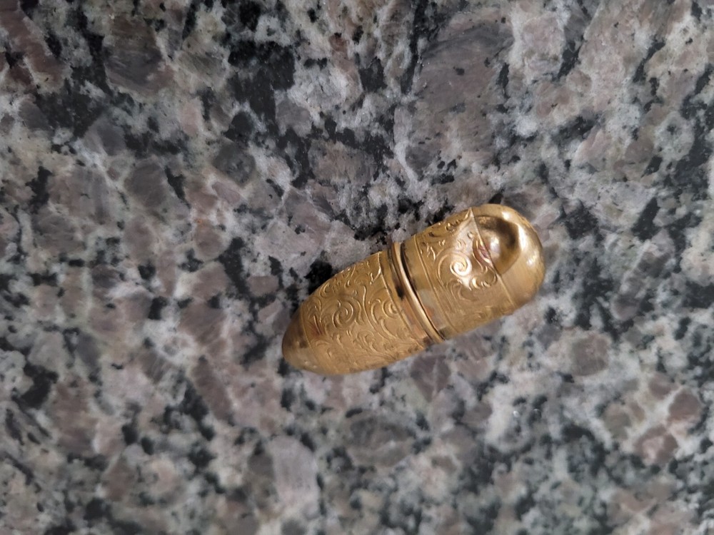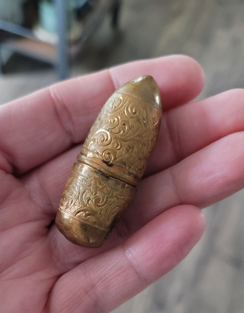 UNIQUE CASE. GOLD TONE MAYBE BRASS? HAS A DENT AS YOU CAN SEE IN PICTURE BUT I THINK YOU COULD WORK THAT OUT PRETTY EASY. *** I DO OFFER SHIPPING DISCOUNTS ON MULTIPLE ITEMS PURCHASED***