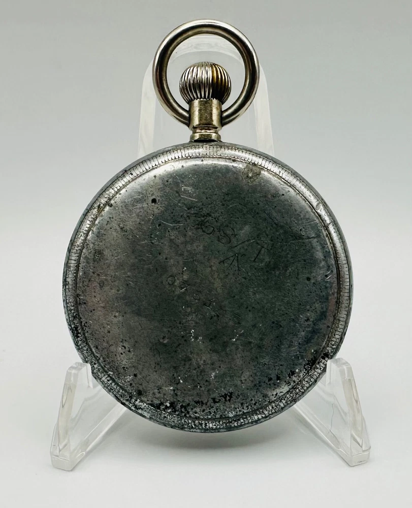 A Piece of History: Authentic British Military General Service (GSTP) Pocket Watch Presenting a genuine antique Swiss-made pocket watch, rich with military history. This timepiece is explicitly marked on its rear case with the distinctive "GS/TP" designation and the Broad Arrow (pheon) mark , identifying it as an official British General Service Time Piece . These watches were widely issued to military personnel across various branches, including the Army and Royal Air Force, for essential timekeeping during the mid-20th century, particularly throughout World War II. The watch is powered by a 15-jewel, stem-wound Swiss-made mechanical movement and is currently in working condition . It features a classic white/cream dial with bold Arabic numerals and a sub-seconds dial at 6 o'clock. The case is a robust base metal, consistent with military-issued timepieces of the era. This is an exceptional opportunity for collectors of military memorabilia or antique watches to acquire a piece with tangible historical provenance. Key Features: Authentic British Military Issue: Clearly marked "GS/TP" with the Broad Arrow, confirming its status as a British General Service Time Piece, issued to military personnel. Swiss Made Movement: Features a reliable 15-jewel, stem-wound mechanical movement. Working Condition: The watch is fully functional. Classic Military Design: A clean, legible dial with Arabic numerals and a sub-seconds indication. Historical Significance: A tangible connection to British military history from the mid-20th century. Condition: This antique military pocket watch is in good working order . Cosmetically, the case, particularly the rear, shows noticeable wear, tarnishing, and some pitting/surface corrosion , which is common and expected for a military-issued item of its age and use. The dial exhibits some natural patina and discoloration consistent with age. Please refer to the detailed photographs carefully, as they form an integral part of the description and best illustrate the watch's exact condition and character gained through decades of service. Markings: Rear Case: "GS/TP" with Broad Arrow, and "075183" (serial/issue number). Inner Case: "3330280" (case number). Movement: "SWISS MADE", "15 JEWELS". Dimensions: Case Diameter: 51.8mm (approximately 2.04 inches). Don't miss this chance to own a piece of military horological history! As usual, this item will be packaged carefully and dispatched with tracking. International shipping is available upon request.