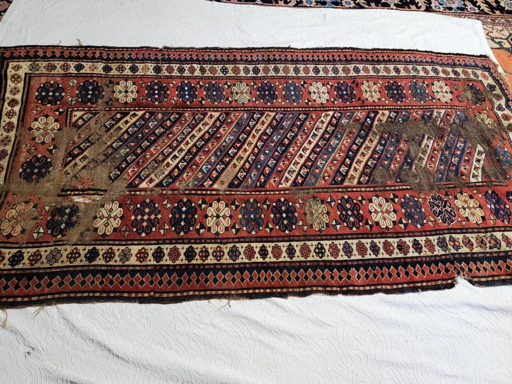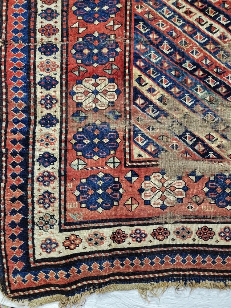 This Antique Caucasian Hand Knotted Wool Runner is a unique and authentic piece with a Geometric tribal design typical of the Shirvan and Kuba regions. Measuring 4x8 feet, this rectangular rug is made of wool and hand-knotted with intricate details. The multicolor palette and tribal style add a touch of history and culture to any space, making it a valuable addition to any collection or decor. Crafted between 1920-1949 using traditional knotted production techniques, this runner embodies the rich heritage and craftsmanship of Caucasian rug-making.