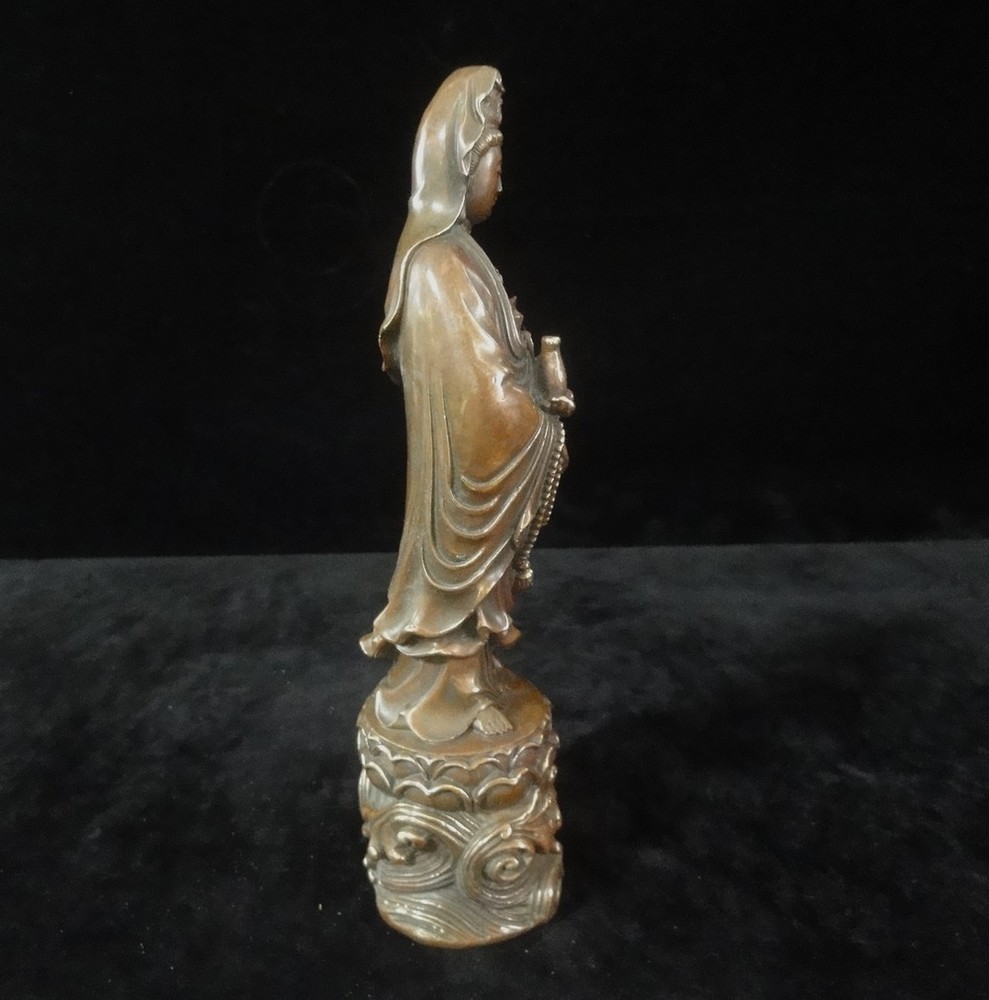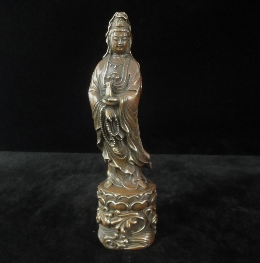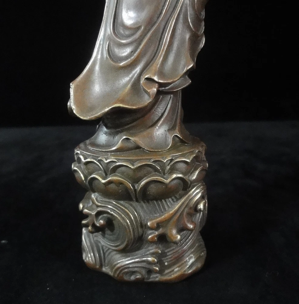 This item will be shipped from New York by USPS and free shipping cost for the all US buyers,please click here to see the size and more photos. Home New Arrival All Items End Soon Add to Favs Store Categories All items Vases Statues Bangles Pendants Paintings Ink Stones Bowls Cups Plates Censers Old Chinese Bronze "GuanYin" Buddha Holding Bottle Figurine Statue "QianLong" [Net Weight:1.43LB (0.65kg)]; [Height:8.08" (20.5cm)]; [Bottom Width:2.17" (5.5cm)]; A very fine Chinese old bronze Statue who is called "GuanYin" in Chinese,she is standing on the lotus base and one hand holding a bottle,marked four characters "Qian Long Nian Zhi " on the bottom, it is very worth to collecting! You will get this statue as the same as the one in the photos,please look at the photos carefully for more details before you buy it,thank you! Categories: All Items Vases Bangles Pendants Ink Stones Bowls Cups Plates Statues Brush Pots Brush Washers Teapots Censers Paintings Calligraphies Pictures: Shipping Payment Return About Us Feedbacks Shipping Item(s) will be shipped in 1-2 business days by USPS,if you want me ship it to you by other ways,please contact me. Tracking numbers will be updated to ebay when item is shipped. If you do not see a tracking number within 3 business days please contact me. I will combine the shipping cost in a discount to save the money for multi-items you buy in one day,please contact me before you purchase the items you want,thank you! Payment Accept eBay payment way! We only ship to confirmed ebay addresses. When you make payment,please confirm it.Thank you! Return 30 days money back or item exchange, seller pays return shipping; ebay Money Back Guarantee: Get the item you ordered in the same condition or get your money back. Covers your purchase price and original shipping. About Us I'm a serious seller in US,if you're not satisfied with your items,please contact me here,I will answer you in 24 hours,thank you! Feedbacks If you like my items,please leave me 5 star feedbacks. please contact me first before you leave Neutral or Negative feedback. I will do my best to solve the problem for you,thanks! Listing and template services provided by inkFrog