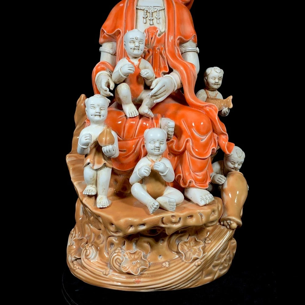 The product is a 19" Old Chinese Dehua kiln white porcelain Lotus Terrace Thousand-hand Kwan-yin statue. It is handpainted with rose purple gilded gold colors and features intricate details depicting the revered figure of Kwan-yin. This antique original piece originates from China and is a stunning representation of Asian antiques in the figurines and statues category. Each handcrafted piece showcases the craftsmanship and artistry of Chinese artisans, making it a valuable addition to any collection. Size: H53.5, W 26cm AA06 德化窑重彩五子闹观音,高53.5厘米,直径26厘米 PAYMENT Please pay within 7 days of purchase, otherwise the order will be closed. DELIVERY DETAILS Shipping: about 7-15 days to arrive. International shipping: about 12-25 days to arrive. TERMS OF SALES About usIf which item was damaged or lost on shiping way. Please don't Worried and angry, Please be sure to contact we first. We are very willing to accept everything. and I will do my best to help you to solve the problem by communication. So only by friendly communication,is to resolved the problem a good way. however, some buyers before solve the problem first to our account leave neutral and negative feedback (this kind of behavior is not welcome) Contact us Do not forget to give us a positive 5 star rating after receiving your item. This is very important. thank you very much. We hope you are satisfied with our products and services. Thank you for your understanding of each seller, I wish you a happy shopping! Happy everyday. If you have any question, please contact us, we will give you the answer in a timely manner. ABOUT US We are a company that we collect beautiful Chinese antiques and fine arts and crafts,Art is the human best interpretation of beauty. We collect the folk fine art from China. Our collection of Chinese porcelain, purple clay sculpture. We experienced, vision, provides the high-quality service for you, would you please come into our store, sharing the Oriental civilization interpretation of beauty! Thank you very much!