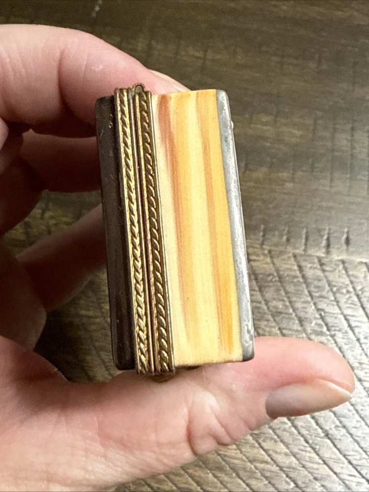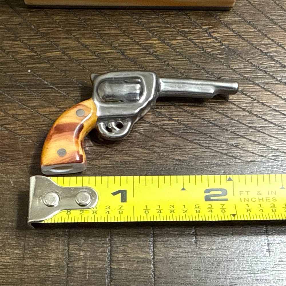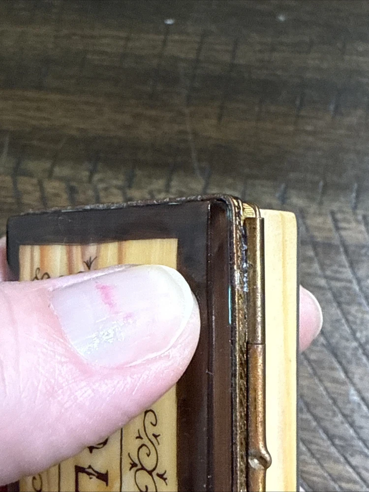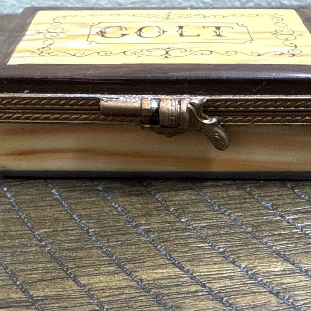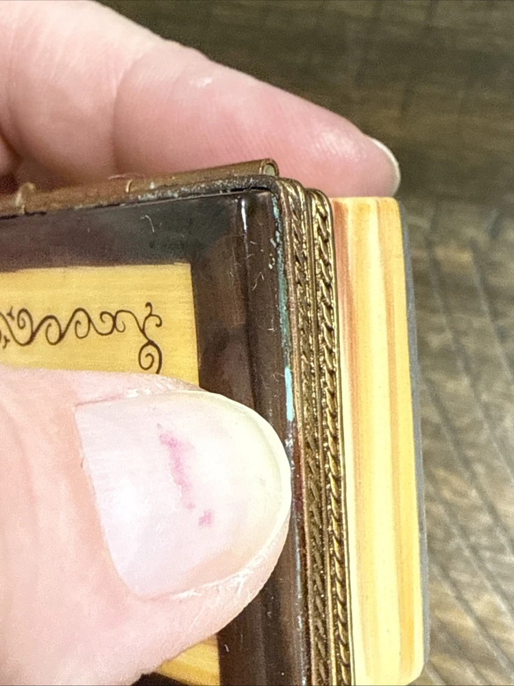Great Condition. See photos. There is some green showing as shown in photos. I’m not sure if this is from oxidation from the metal or paint. See photos. This is a very rare piece, especially to have the gun trinket to go with it. I was told it is New Old Stock from a dealers inventory that has been in storage since the 1990s. Hand Painted - Limoges France