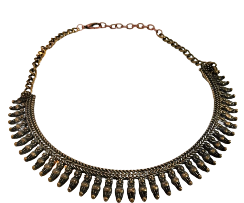 Antique Elegance 16" Oxidized Gold Tribal Choker w/ 3" Extender JN1462 Channel timeless sophistication with this antique-inspired gold choker. An effortless blend of vintage charm and modern edge. Every piece of jewelry you wear has a story to tell—make yours unforgettable. Treasure Vault’s vintage and statement collections let you channel power, grace, and edge, no matter the occasion. Perfect for the woman who isn’t afraid to shine, our pieces are curated to elevate your style, day or night. Ready to write the next chapter? Bundle & Save: One treasure is never enough. Add a little more to your story and save while building your perfect collection.