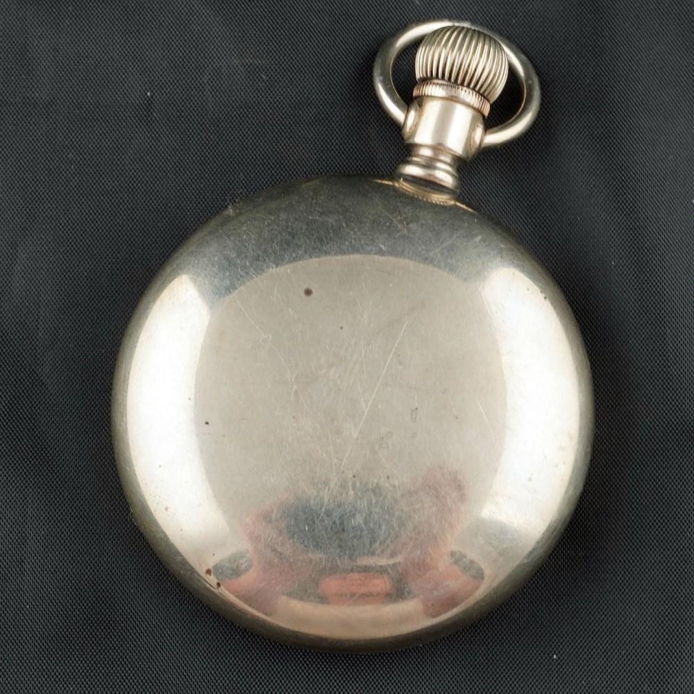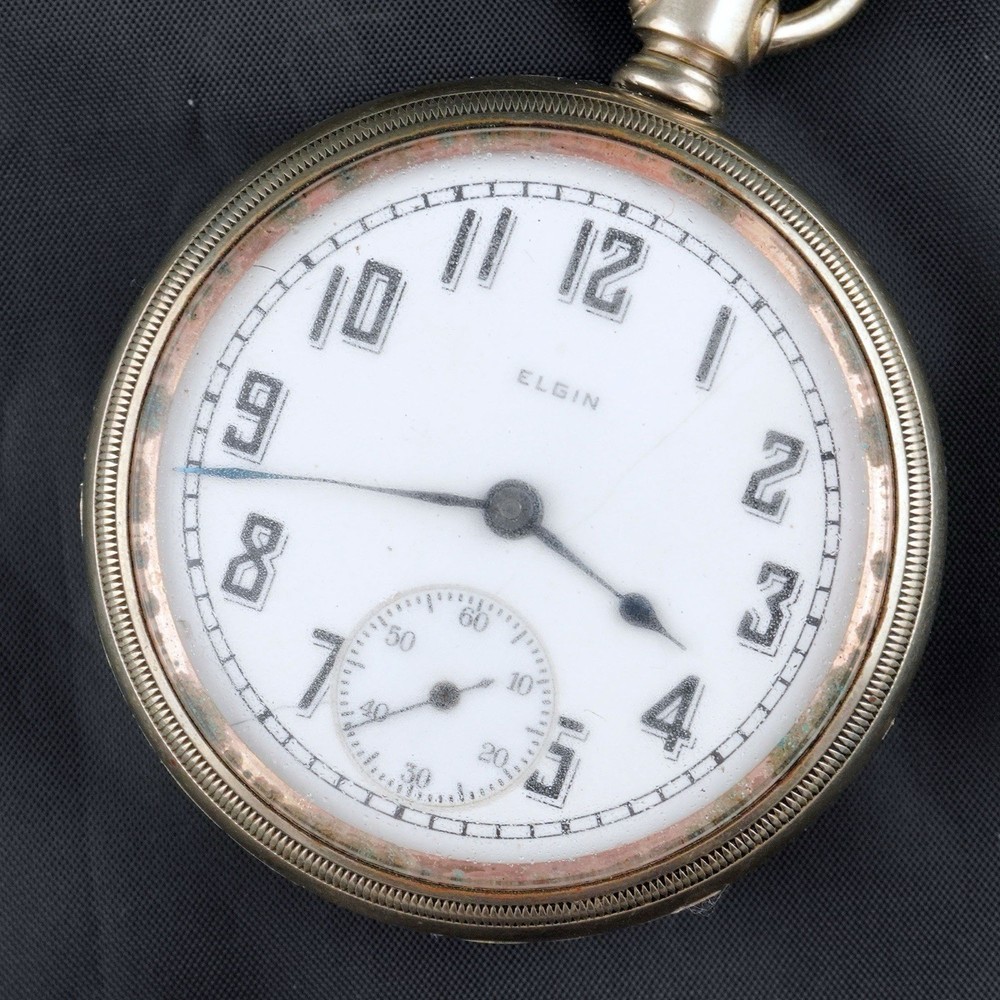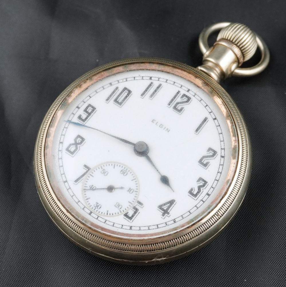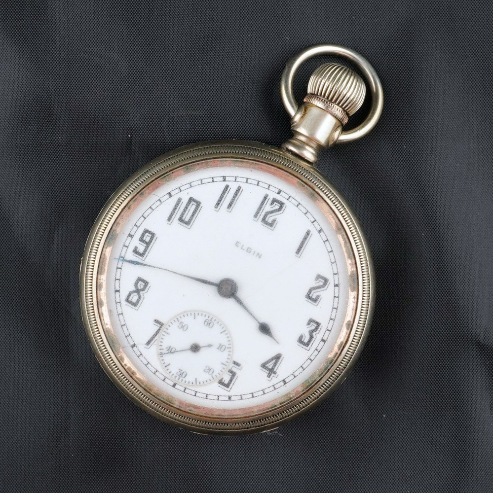 For sale is a vintage Elgin pocket watch, Grade 218, made in 1923 by the Elgin National Watch Company, U.S.A. This is a classic 18-size, full-plate, manually wound timepiece with a pendant setting. The movement is currently ticking, and the balance wheel runs, but the second hand is not moving — likely due to a disengaged or worn gear in the train. Still, this watch is an excellent candidate for display, repair, or restoration. ⸻ 📌 Details: • Brand: Elgin National Watch Co. • Serial Number: 25918472 • Grade: 218 • Model: 5 • Size: 18s (54.7 mm case) • Jewels: 15 • Setting: Pendant • Plate: Full Plate • Production Year: c.1923 • Movement Type: Mechanical, Manual Wind • Case Material: Nickel • Dial: Enamel, bold black numerals with sub-second dial • Hands: Blued steel • Condition: • Movement runs, balance ticks • Second hand not moving • Dial has visible hairline cracks • Case shows normal wear from age