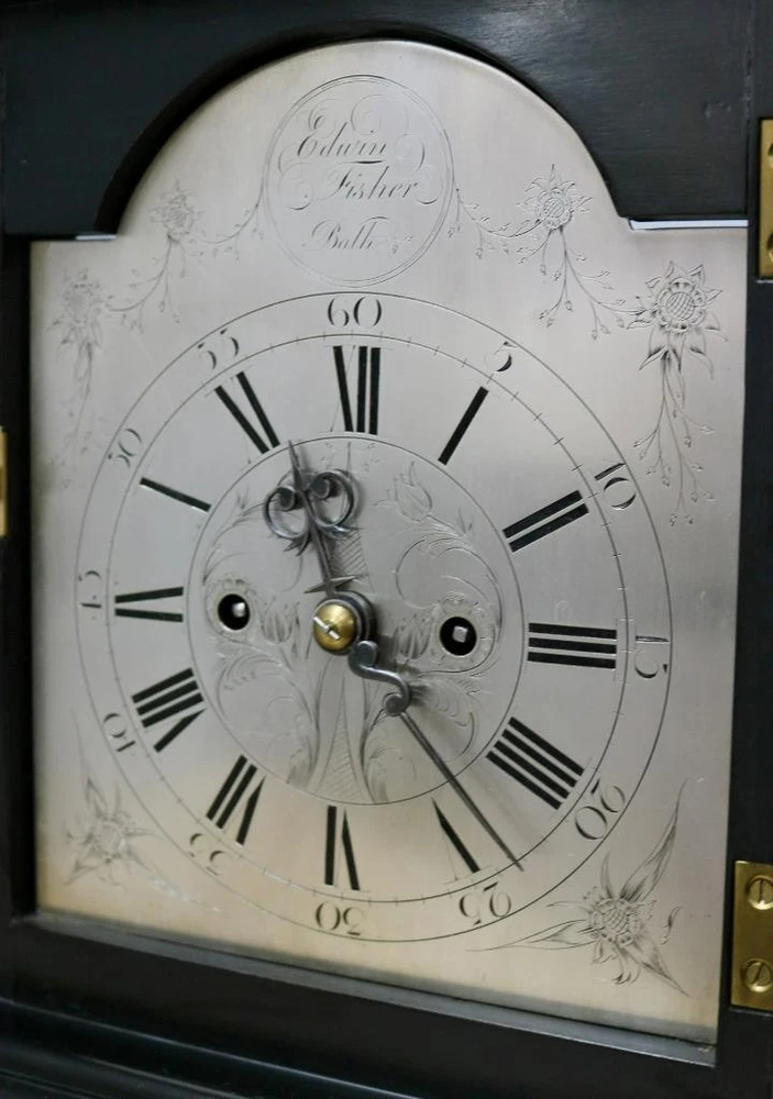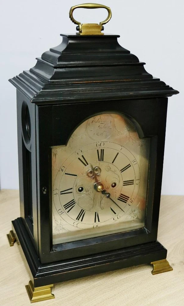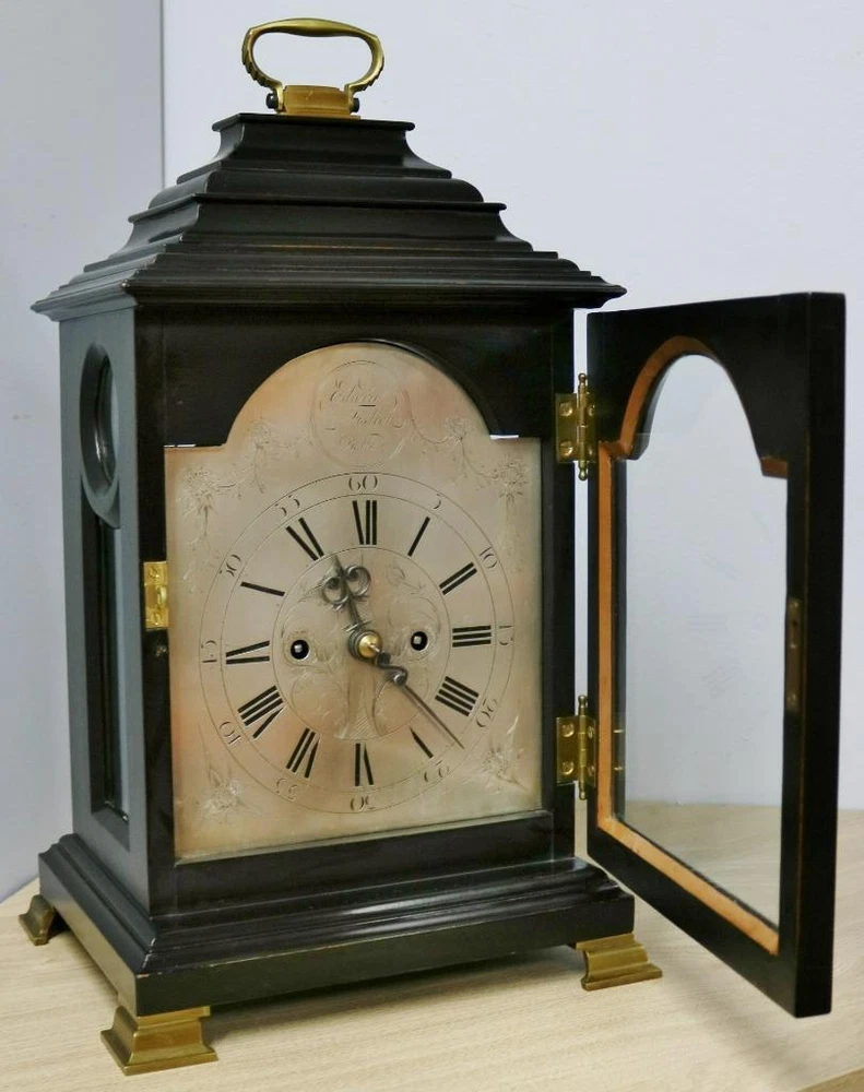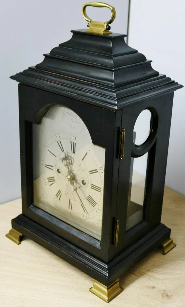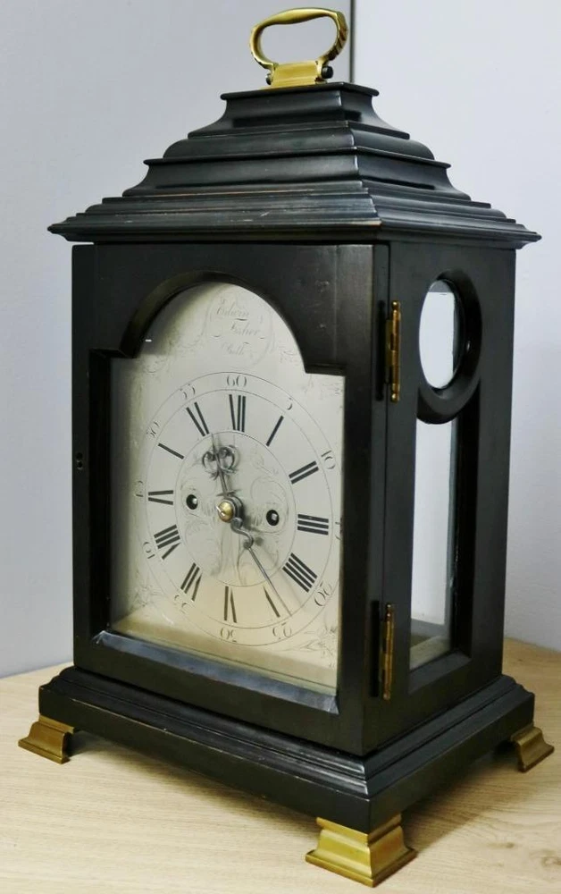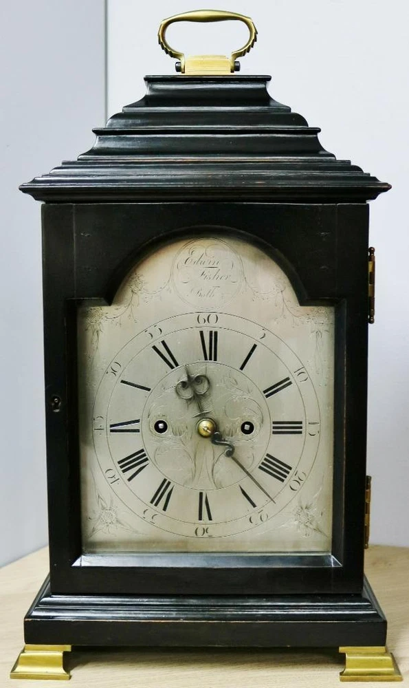 Time Period Manufactured: 1800-1849 Original/Reproduction: Original Room: Any Room Finish: ebonised Features: 8 Day Movement, 8-Day, Handmade/Hand Carved, Keys, Winders, Pendulum/Moving Parts, Striking/Repeating, Wind Up, fusee, fusee movement, silvered dial Brand: Edwin Fisher of Bath Antique: Yes Country/Region of Manufacture: United Kingdom Era: Pre-Victorian (Pre-1837) Type: Bracket Clock Material: Brass, Glass, Wood Vintage: Yes Power Source: mechanical