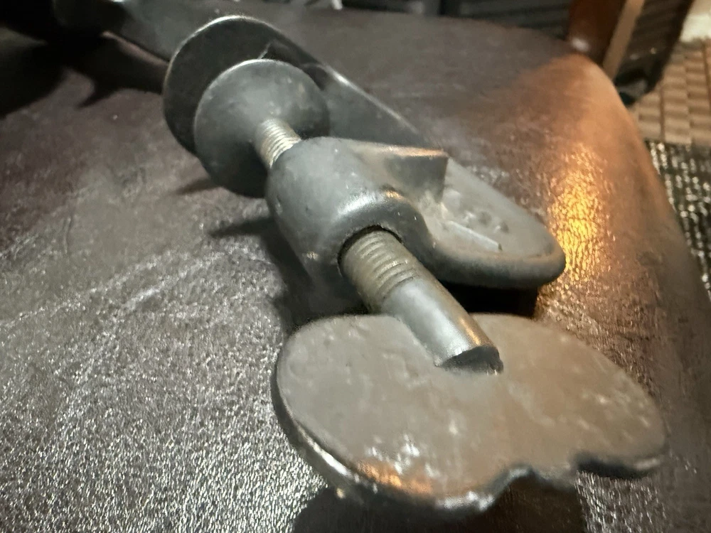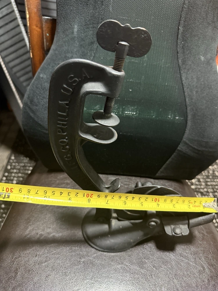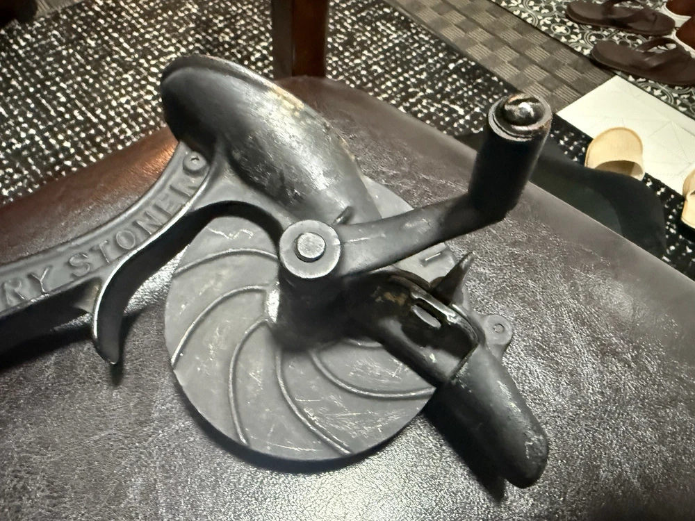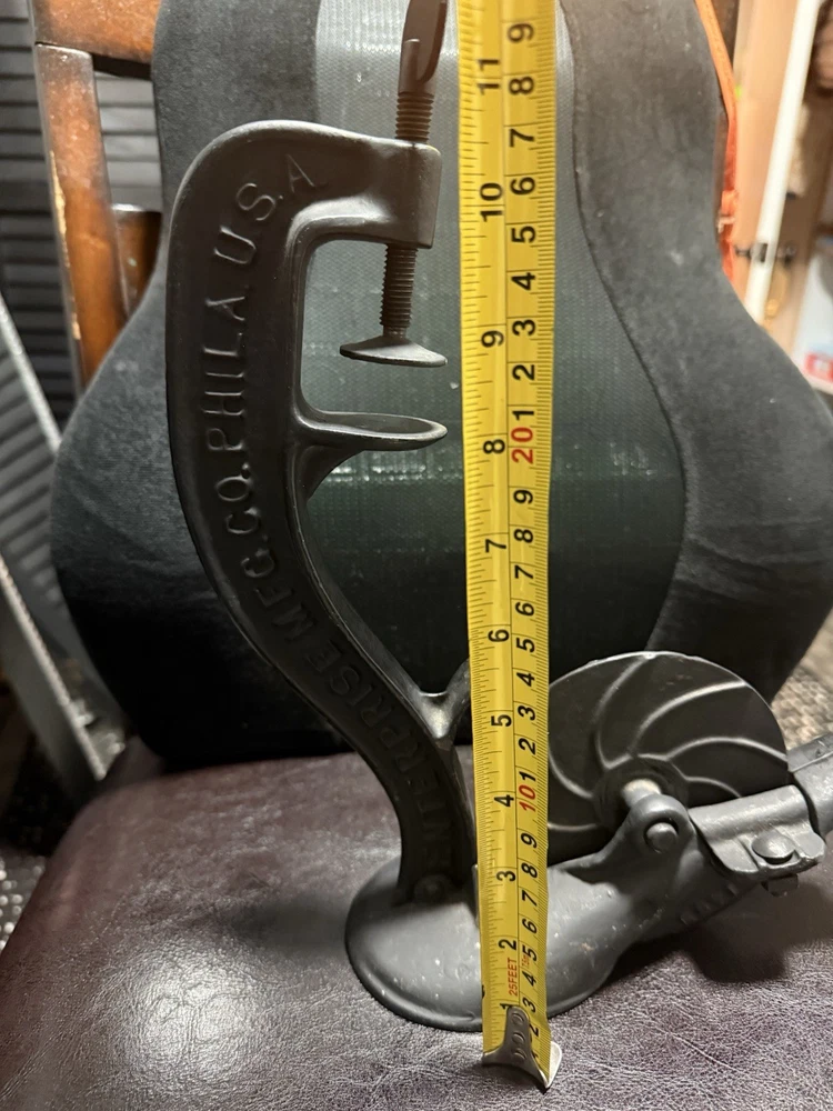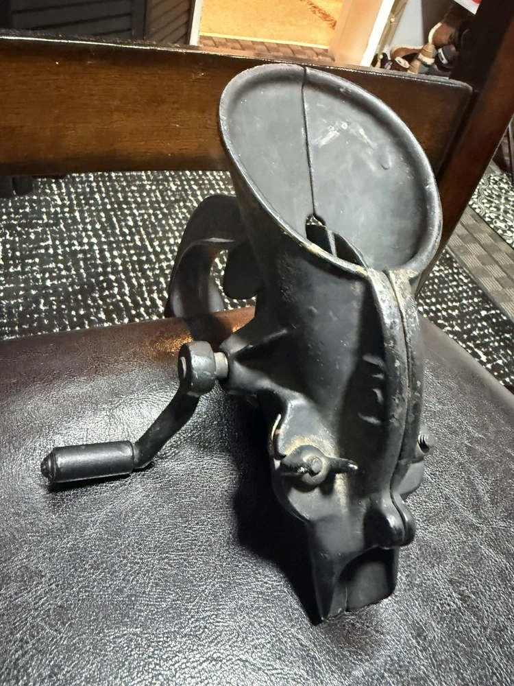 A classic piece of early American kitchen equipment, this Enterprise No. 1 Cherry Stoner was manufactured in Philadelphia, PA by the well-known Enterprise Mfg. Co., a leader in durable cast iron tools around the turn of the 20th century. Originally designed for efficiently removing pits from cherries, this piece is now highly sought after for both functional use and farmhouse/primitive décor. 🔧 Features • Heavy-duty cast iron construction • Original hand crank and table clamp • Marked: “ENTERPRISE MFG CO. PHILA U.S.A.” • Model: No. 1 Cherry Stoner • Casting number: 1309 • Smooth-operating crank mechanism 🧾 Condition • Very good antique condition with original aged patina • Normal surface wear consistent with age and use • Mechanism turns smoothly • Clamp is complete and functional • No cracks or structural damage observed This piece retains its original finish and has not been repainted.