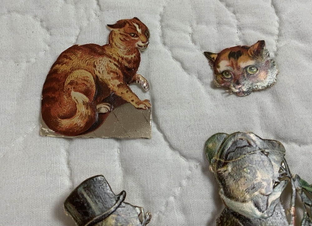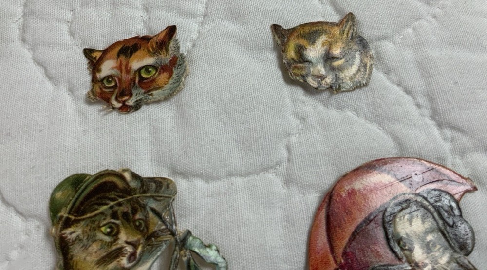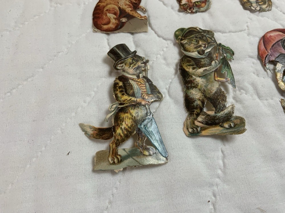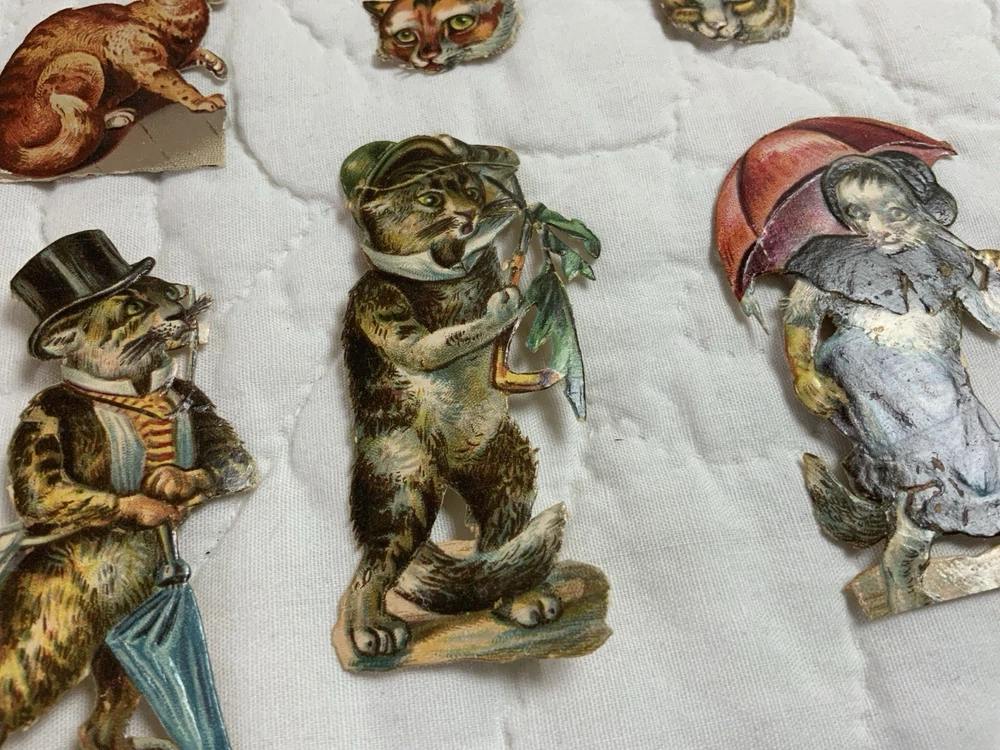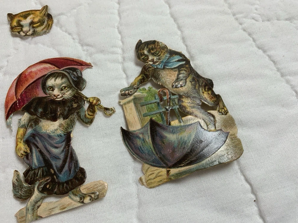 Up for sale is a lot of 7 Victorian die cuts. Anthropomorphic cats with umbrellas, cat faces. Super cute. Original Victorian era ephemera. Almost no damage. Sold as shown. Refer to all pictures. 7 - cats 🌼🐦⬛❤️ Thanks and happy shopping. I will combine shipping. Please visit my ebay store: webbsamericancounry1 for over 2000 vintage and collectible items. 🛶🪰🐇