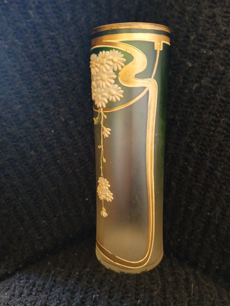 Antique French Art Noureav Glass Vase Hand Painted Flowers
