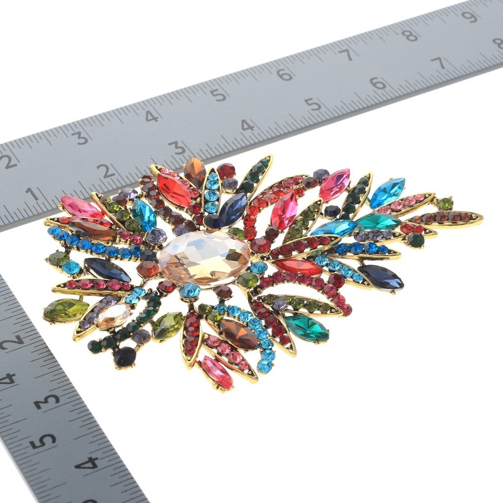 Antique Gold Tone Alloy Metal Extra Large Crystal Flower Brooch / Approximate Size: 5.75" L x 3.75" W / Rhinestone / Metal / Lead & Nickel Compliant / Color: Antique Gold & Multi Condition: Brand New SKU: P1573-MUL Color: Multi Design: Flowers & Plants All orders will ship from USA via UPS or USPS. We expect all local orders will receive the items within 7 business days or less depend the location. Worry free international shipment delay or custom duty fee.