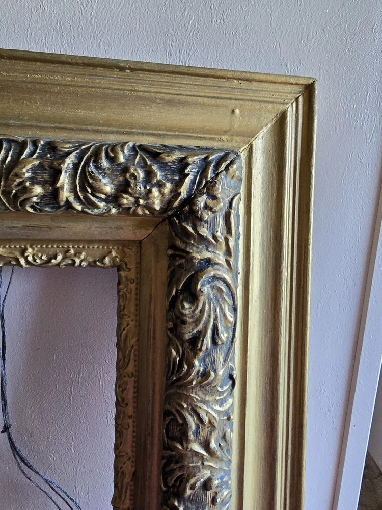 Set of 2 Vintage Ornate Gold Wide Wood Picture Frames Shabby Chic Gallery Art