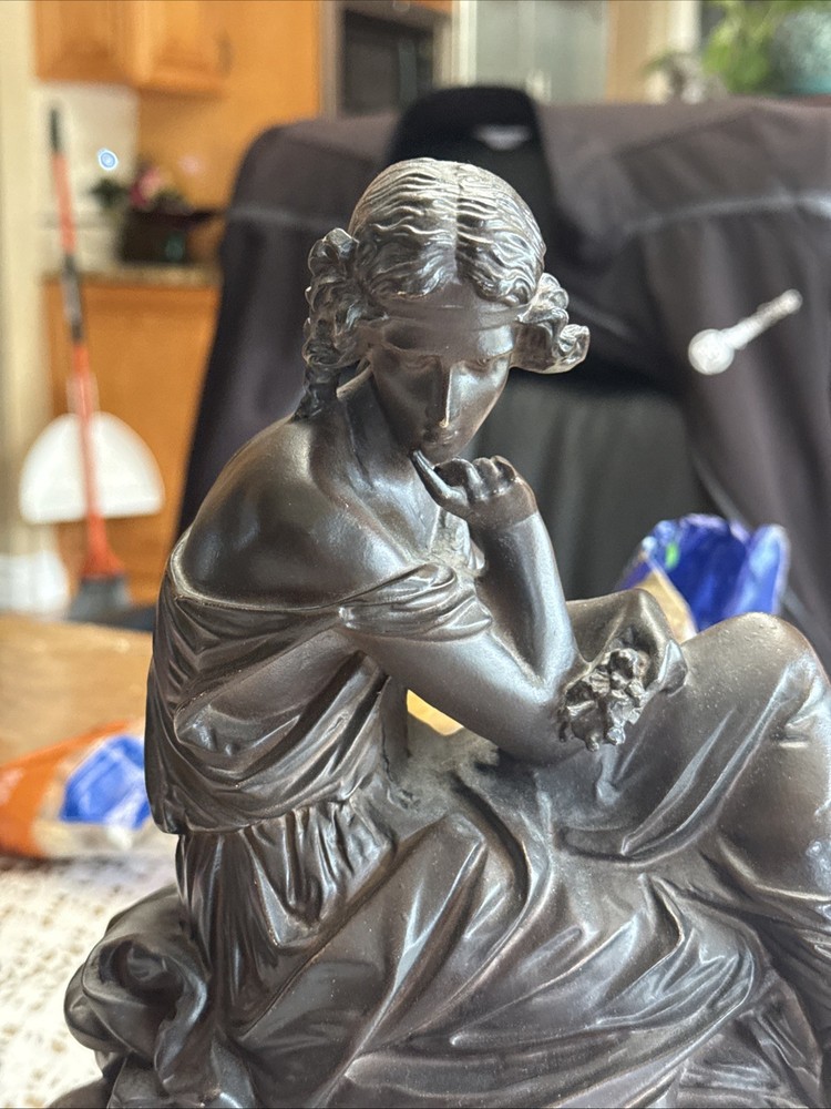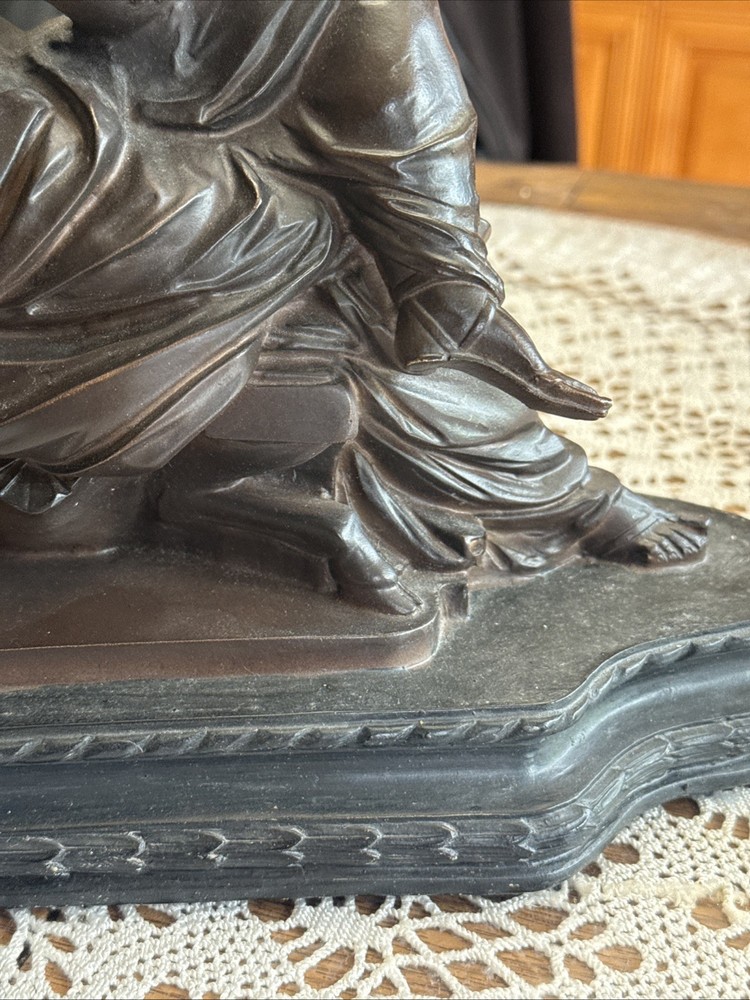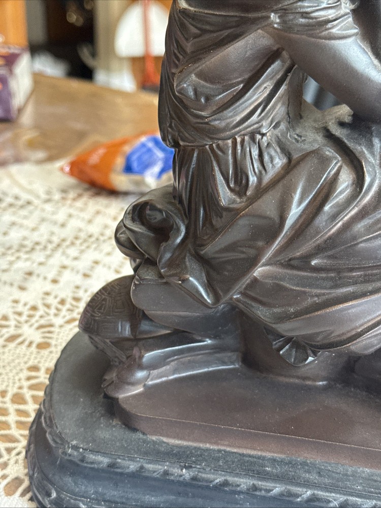 Format:StatueMaterial:ResinSize:Small (up to 12in.)Culture:GreekArtist:UnknownRegion of Origin:ChinaStyle:Art Nouveau, Figurative ArtItem Height:11.25"Placement:TableItem Length:11.75"Color:BronzeSubject:WomenType:StatueItem Width:6.5"Theme:ArtTime Period Produced:Unknown