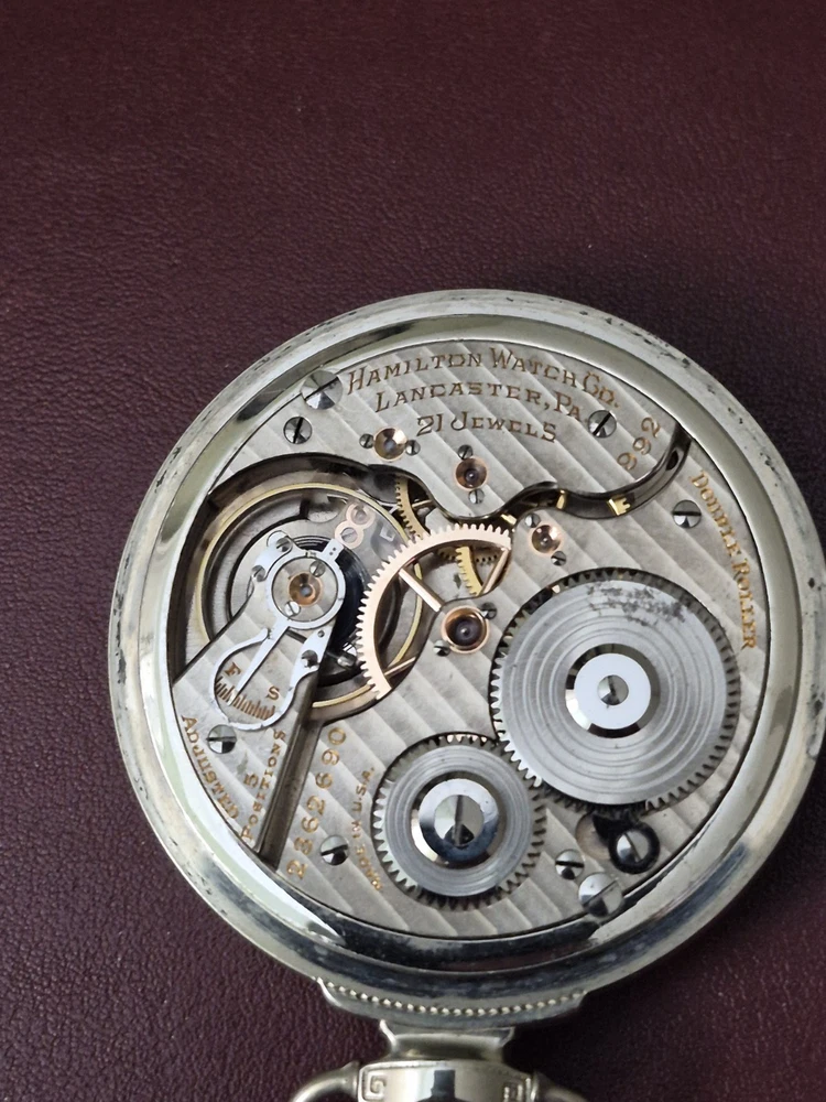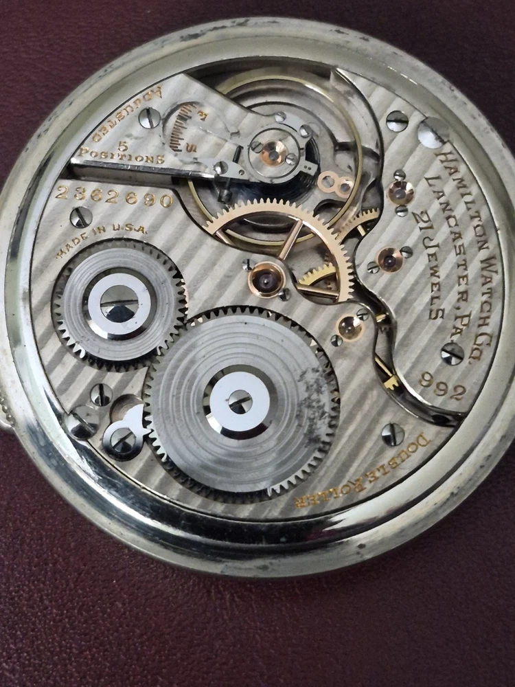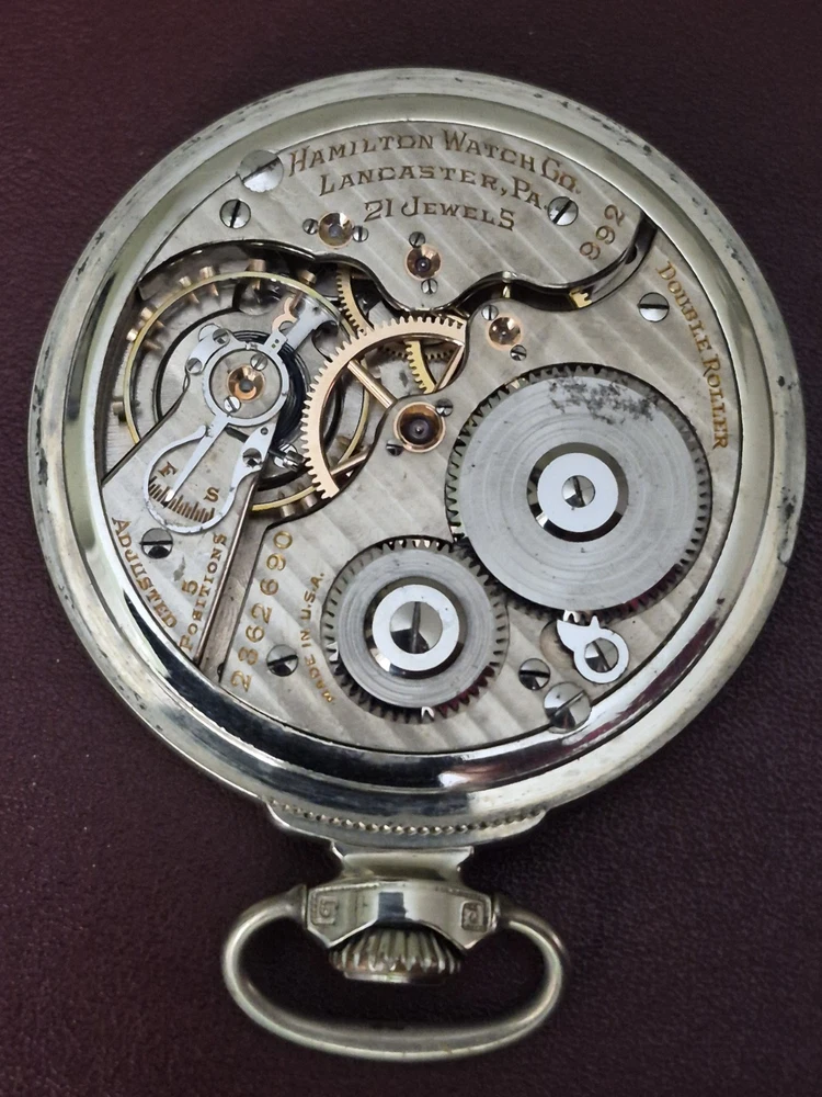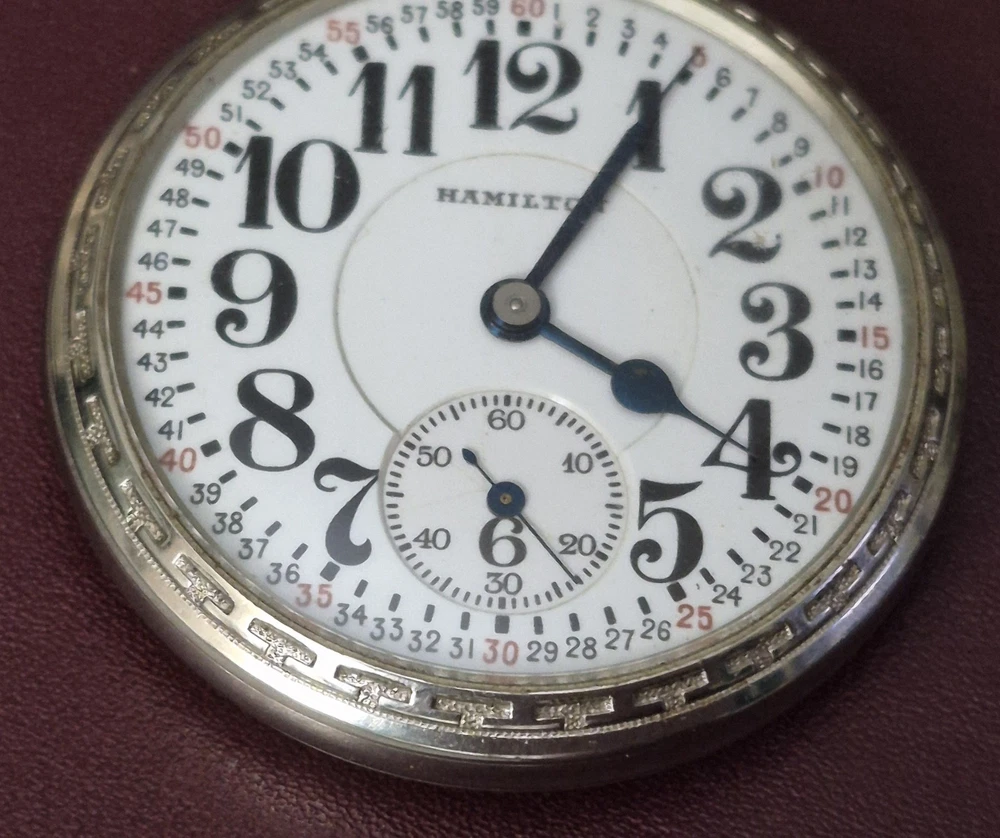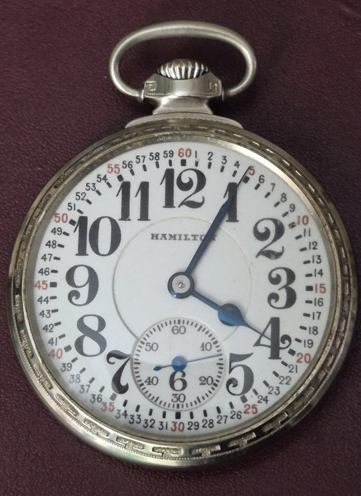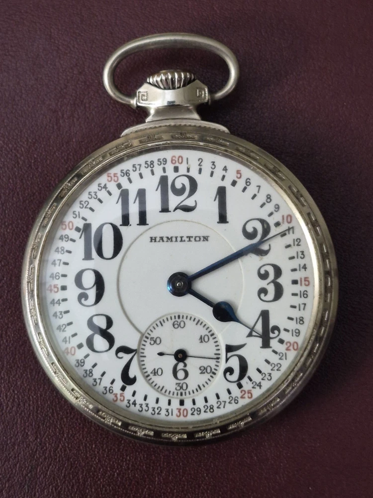 With Papers: No Movement: Mechanical (Manual) Number of Jewels: 21 Jewels Case Color: White Pocket Watch Size: 16 Case Material: White Gold Filled Year Manufactured: 1920-1929 Personalize: No Water Resistance: Not Water Resistant Country of Origin: United States With Manual/Booklet: No With Original Box/Packaging: No With Service Records: No Type: Pocket Watch Case Finish: Polished Vintage: No Customized: No Seller Warranty: No Indices: Arabic Numerals Escapement Type: Lever Theme: Vehicles/Transportation Closure: Open Face Caseback: Screwback Features: Montgomery Model: Hamilton Railroad Dial Color: White Style: Railroad Grade Brand: Hamilton Department: Men Display: Analog