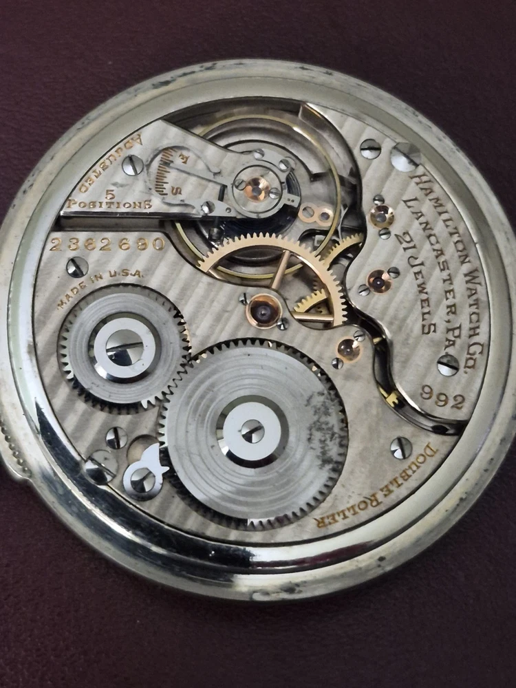 The Antique Hamilton 1926c 14kt WHITE GF 992 Railroad Grade Model 2, Gold Center Wheel and settings. This 100yr old pocket watch is a highly sought after timepiece with a rich history. Featuring a classic open face closure, 21 jewels of Sapphires and Rubies, Arabic numerals, and a lever escapement type. The 14kt WHITE Gold case with a polished finish, Greek Style boarder and screwback caseback adds to its timeless appeal. With its Railroad Grade style and features like Montgomery, this Hamilton pocket watch captures the nostalgia of a bygone era in the United States. Any questions you have, I respond within 24hrs. Thank you and God bless