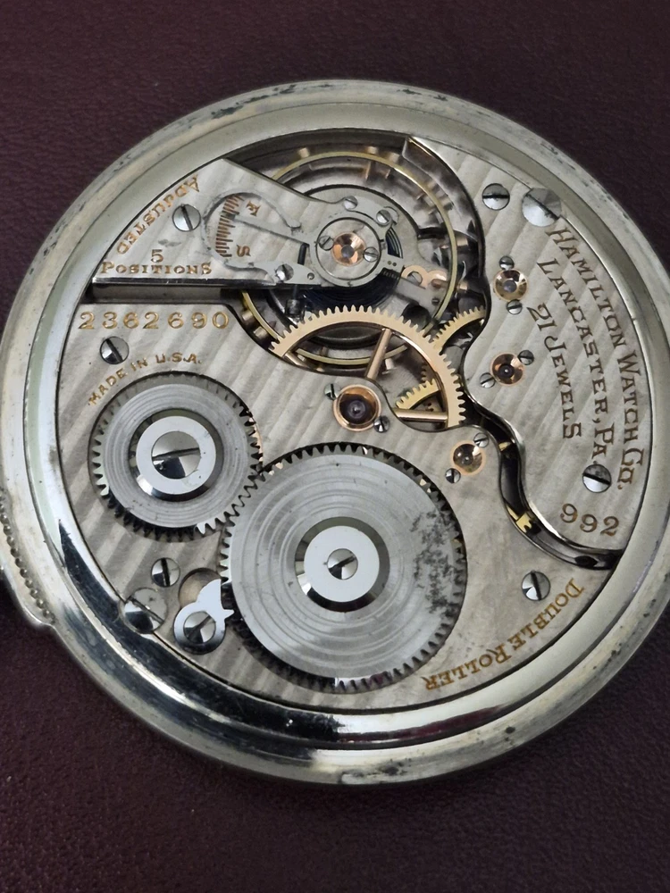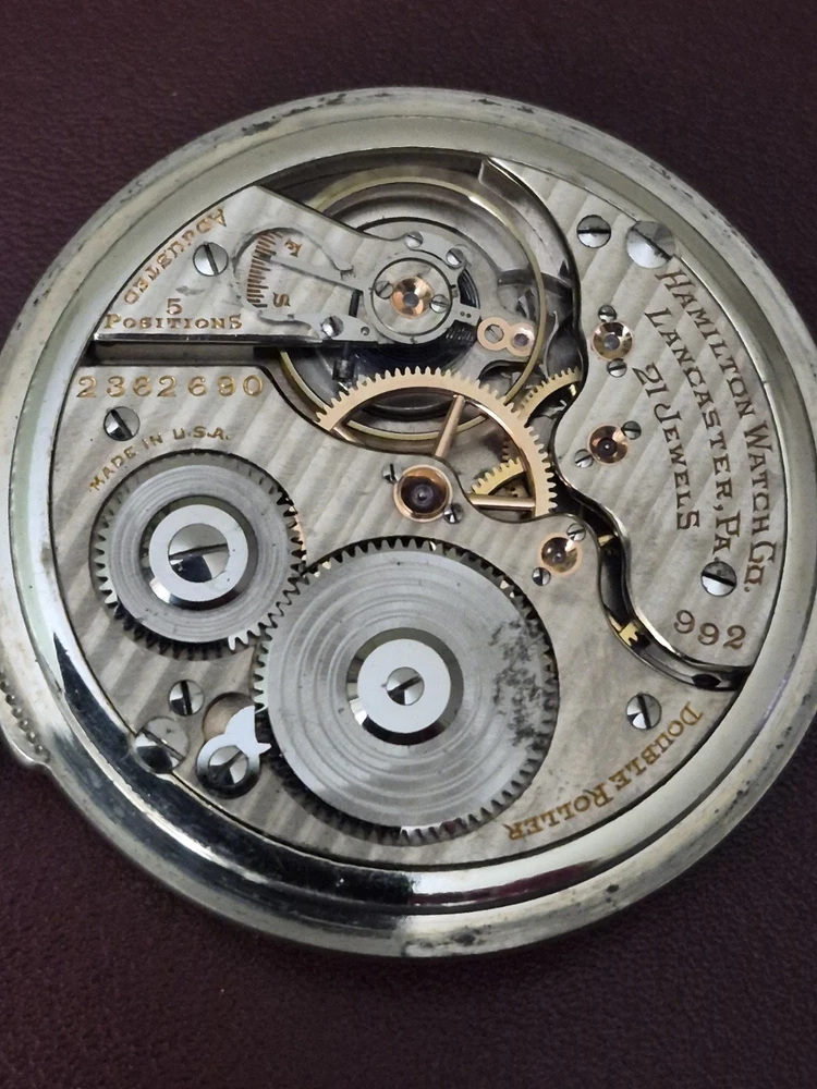 Antique Hamilton 1926c 14kt WHITE GF 992Railroad Grade Model 2 Gold Center Wheel