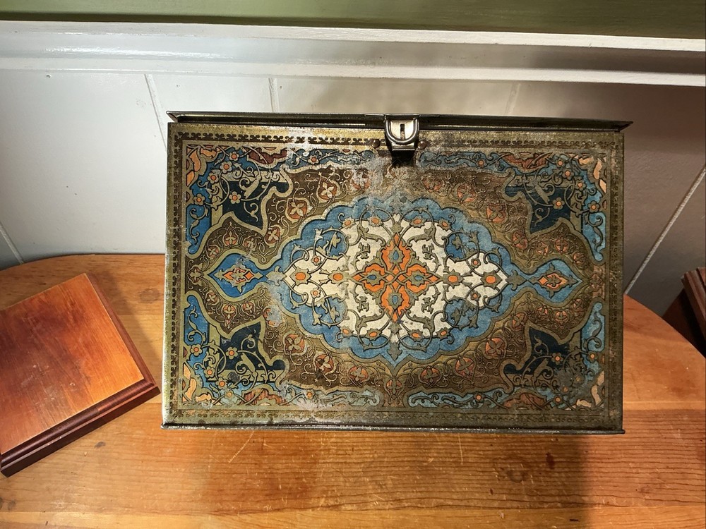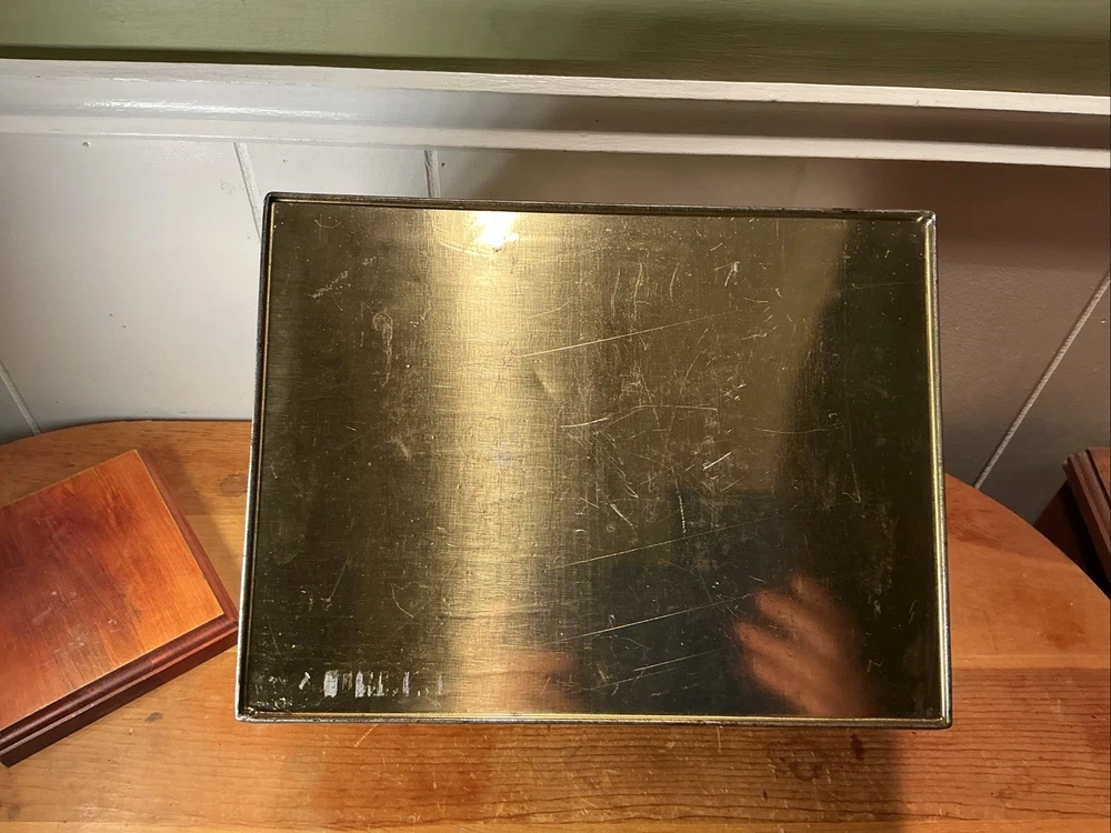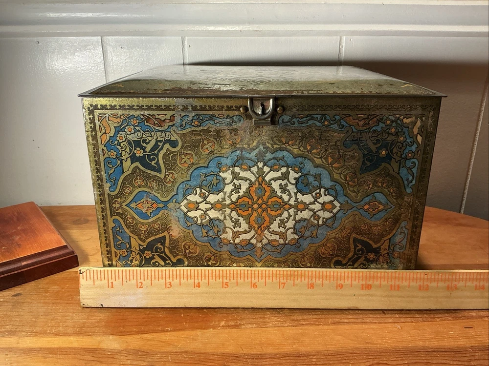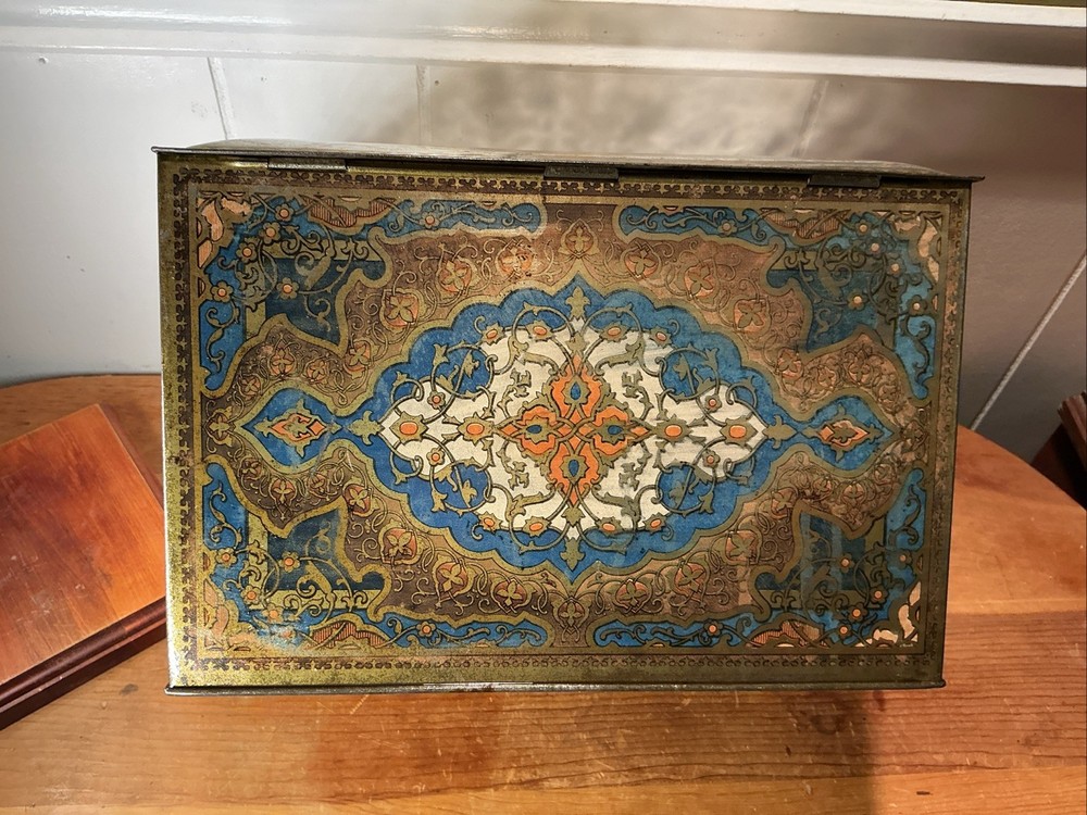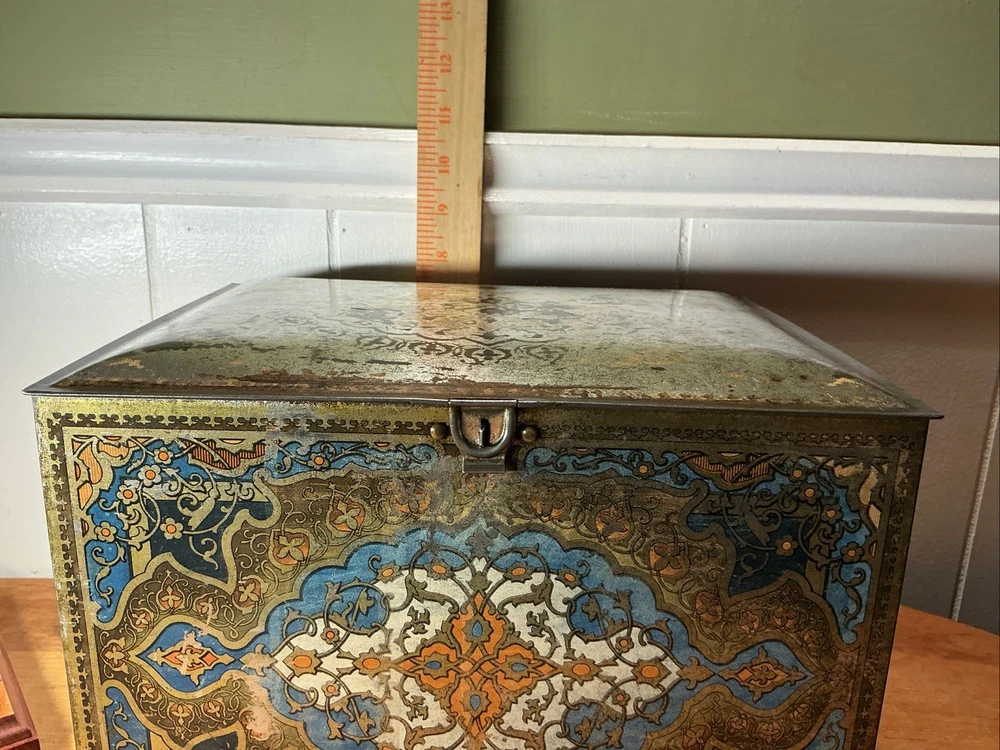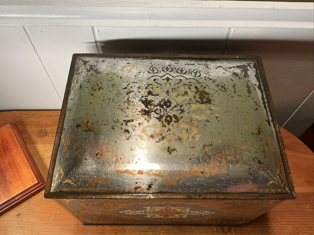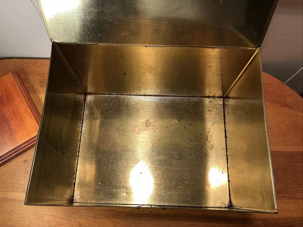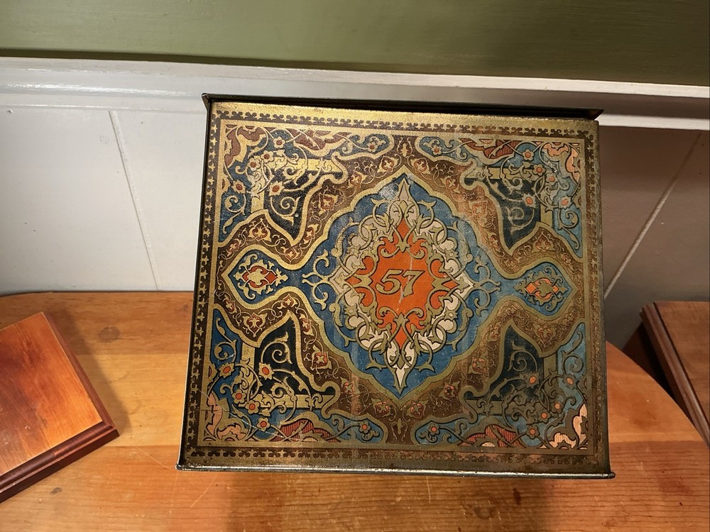 This Antique Heinz 57 Company Large Biscuit Tin Box from the early 1900's is a rare and collectible piece of advertising memorabilia. Made by the iconic H.J. Heinz Company in the United States, this multi-color tin box features the classic 57 varieties logo and measures 11 inches x 8 inches x 7 inches. Perfect for collectors of vintage tins or Heinz enthusiasts, this piece showcases a charming design and a piece of history from the early 20th century.