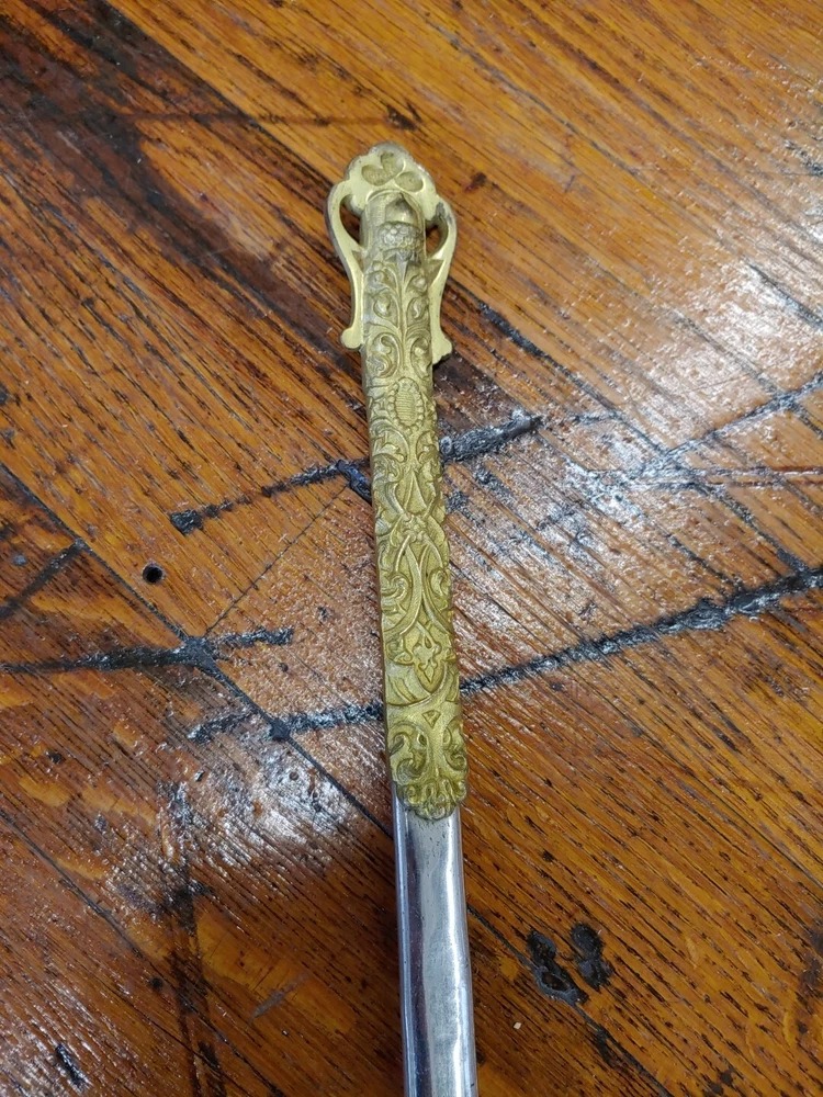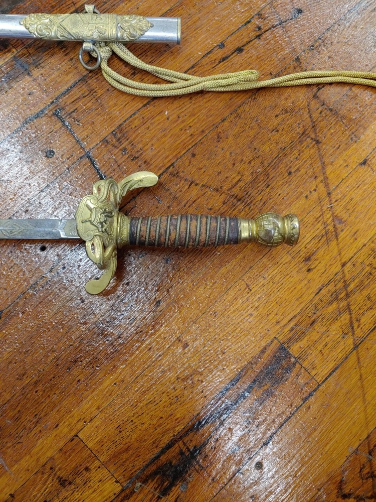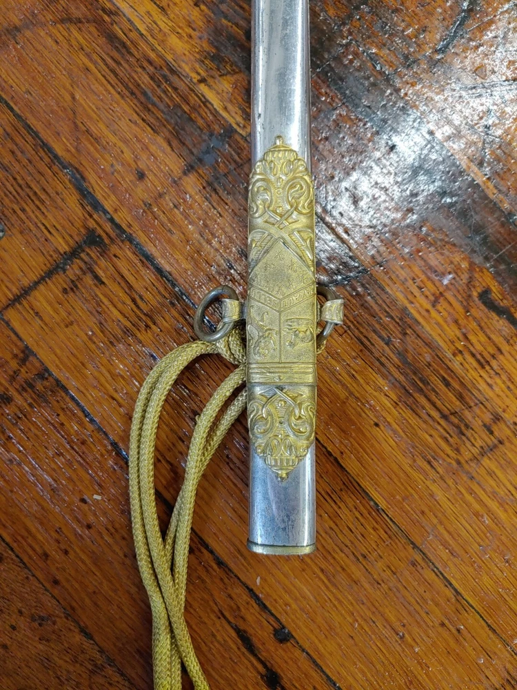 This antique IOOF sword is absolutely stunning! The craftsmanship is incredible, with intricate engravings and the bold "Pax aut Bellum" motto adding a powerful touch. The 35.5" blade is in great condition, and the globe-shaped pommel gives it a unique, historic feel. The scabbard is a nice bonus, making it a complete collector's piece. The personal engraving of "W.A. Haines" adds a personal connection to its past. A true treasure for anyone who appreciates fraternal lodge memorabilia or antique weapons. Highly recommended for history buffs and collectors alike!