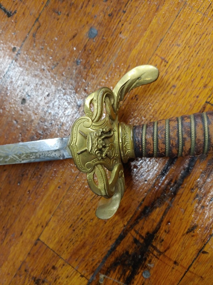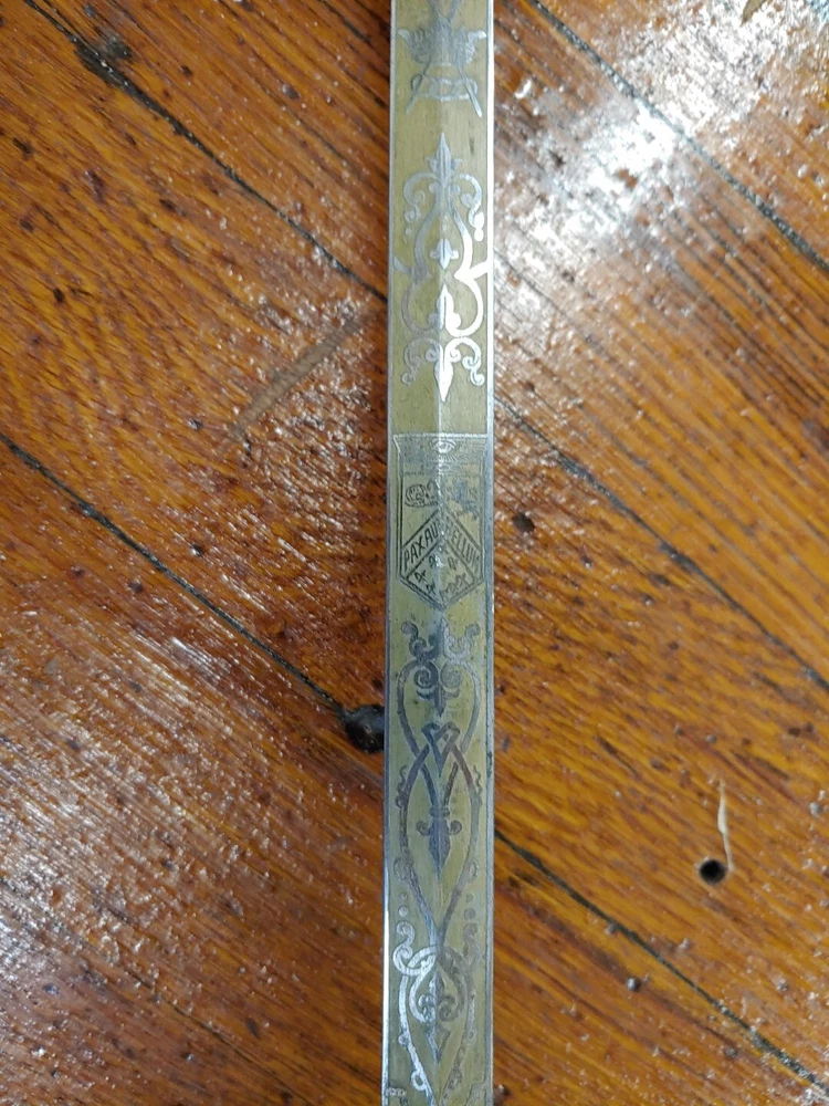 Antique Fraternal Sword Of The Lodge Of The Militant Patriarchs IOOF Engraved Engraved with name "W.A. Haines" Made by M.C. Lilley & Co., Columbus, Ohio. 35.5" long In good condition. Beautiful details. Patriarchs Militant (Uniformed Ranks of the IOOF) society or lodge sword. It comes with the scabbard and is identifiable because of the globe-shaped pommel and the motto "Pax aut Bellum" (Peace or War) which are usually found etched on the sword blade. The Patriarchs Militant fraternal order was first established in the United States circa 1841 and continues to this day. They are a branch of the Independent Order of Odd Fellows (IOOF). All proceeds benefit patients in hospice care.