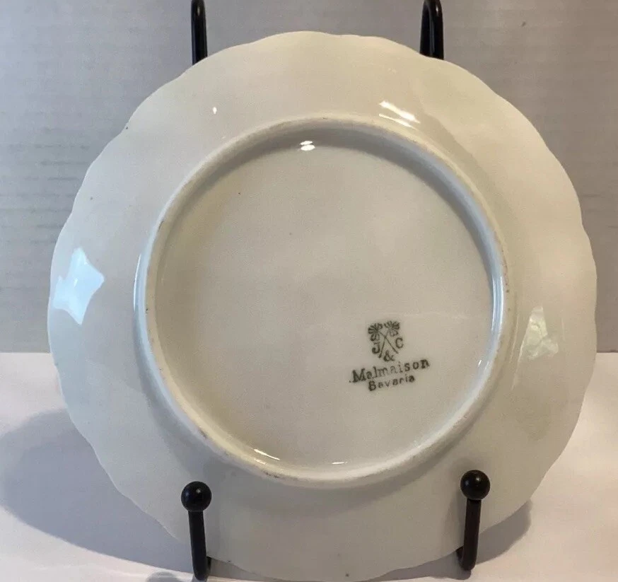 This product is an antique hand-painted floral bread/pastry plate made by J&C Malmaison Louise Bavaria. It is a decorative collectible and falls under the category of collector plates. The plate is 5” and there are no chips, cracks or crazing.