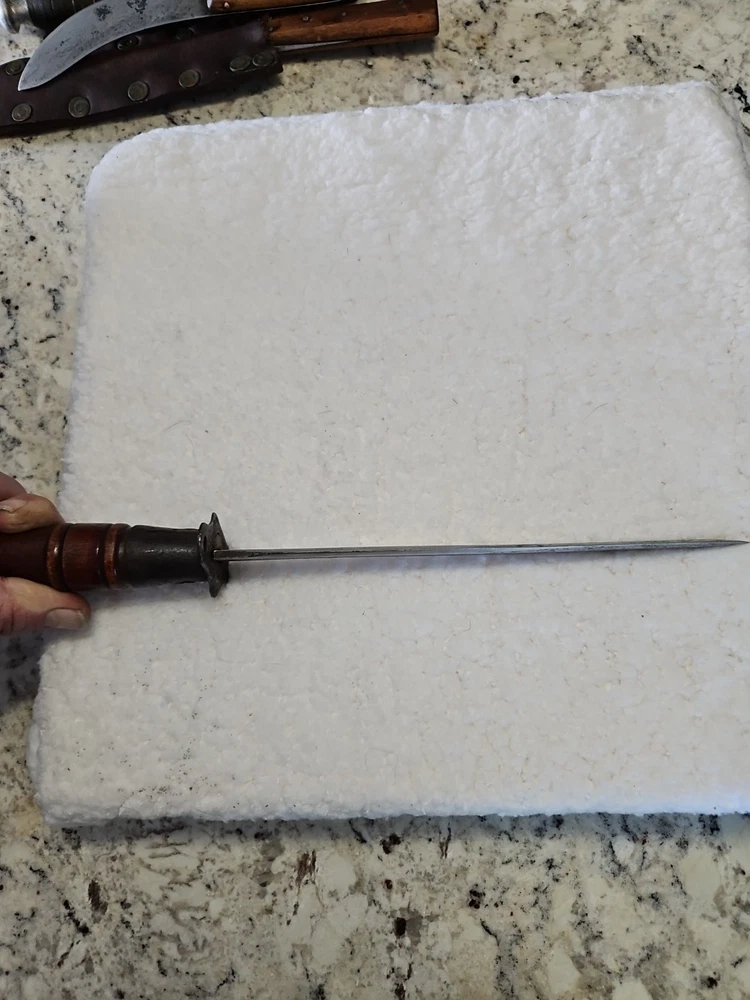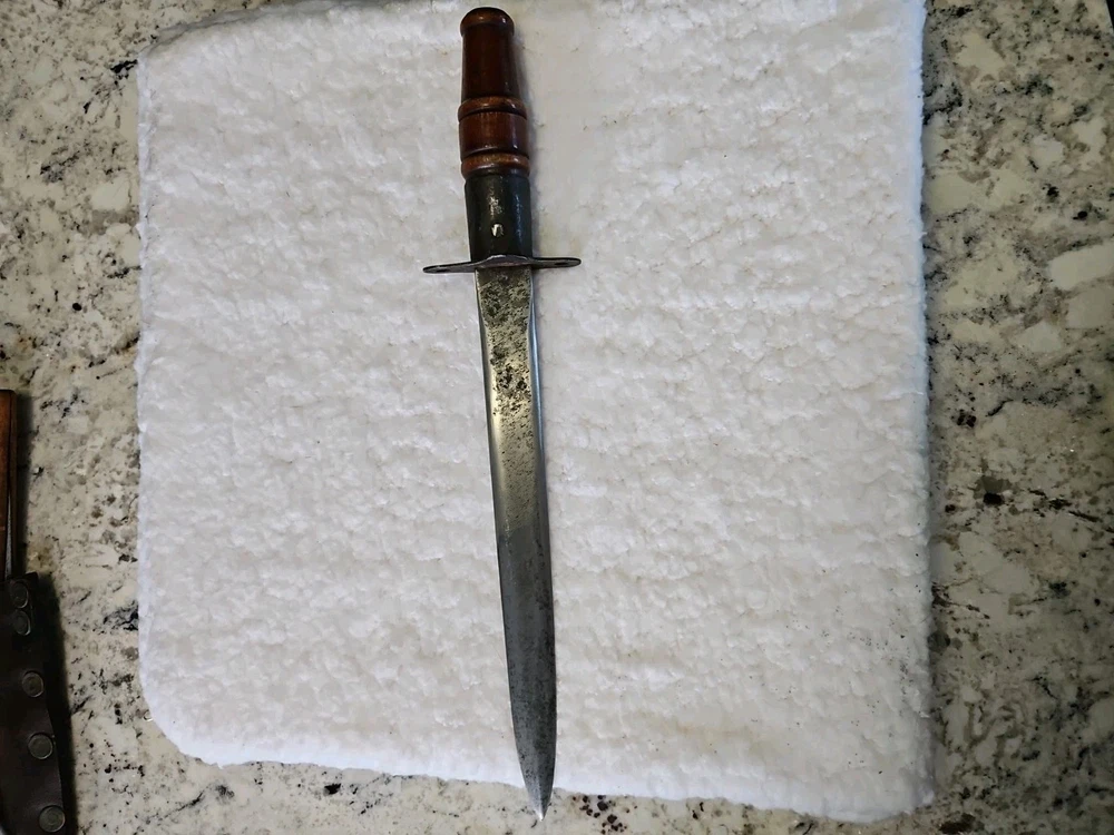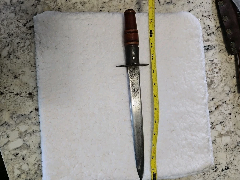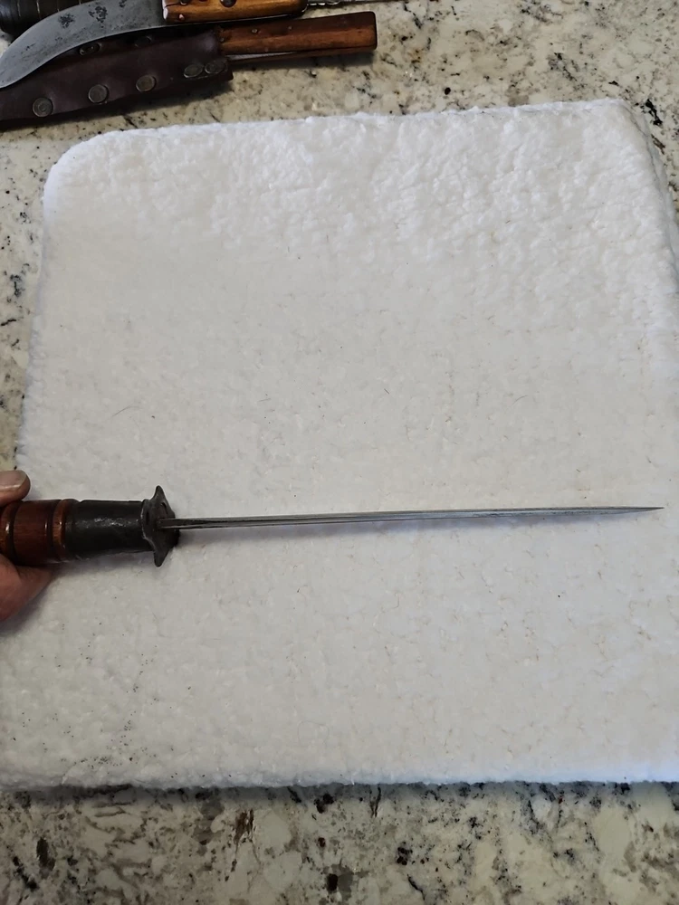 This antique large Bowie knife dagger is a stunning piece for any collector of knives, swords, and sabers. With its unique design and intricate details, it is sure to catch the eye of anyone who sees it. The blade is made of high-quality materials and has been well-crafted, ensuring that it will last for years to come. The knife dagger is perfect for display or as a functional piece for collectors who want to add a touch of history to their collection.