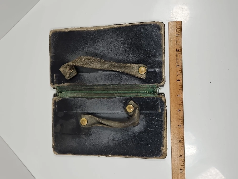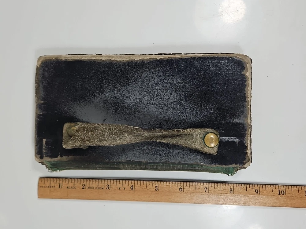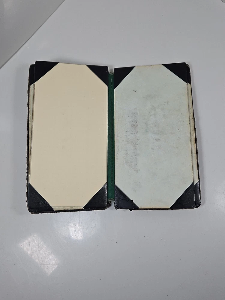 Antique Leather Notebook Hard Pages Workshop Booklet Leather Strapped Good used condition. Light wear from age and use. Markings from age and use. See pictures Product will be shipped timely and packaged with care. Offers are encouraged. Please feel free to reach out with questions. Please see pictures. Thank you. Heavy signs of age and use. Worn corners and edges. Estate find Morton illinois. Sold as is seen. This antique leather notebook is perfect for those who value the classic look of a bound book. The cover is made of high-quality leather that gives a sleek and sophisticated appearance to the item. The notebook is ideal for keeping track of important dates, notes, and sketches. It has hard pages that provide a sturdy support for your ideas, while the leather strap ensures that the notebook stays securely in your hand. This item is perfect for those who want to add a touch of elegance to their everyday life. MRE1