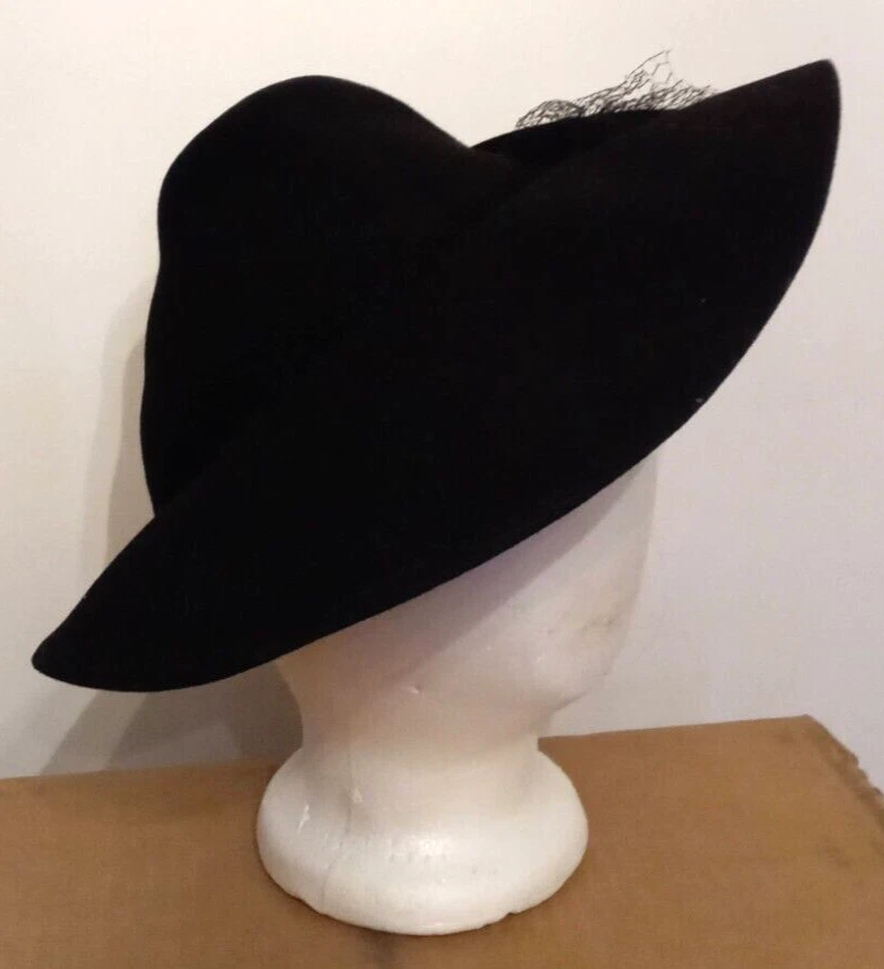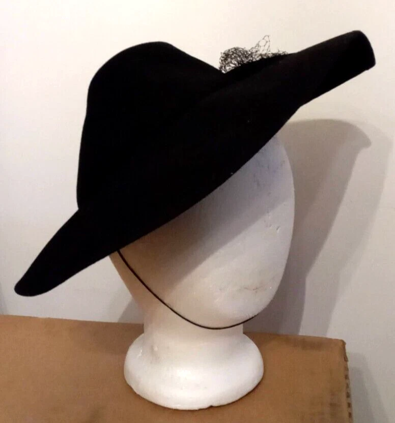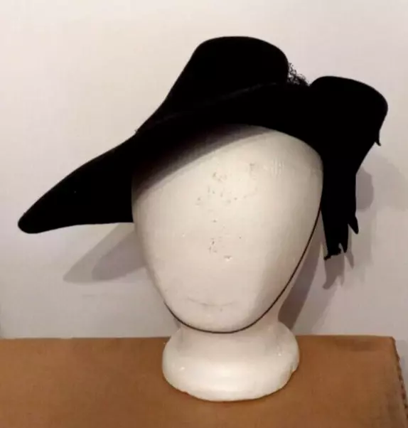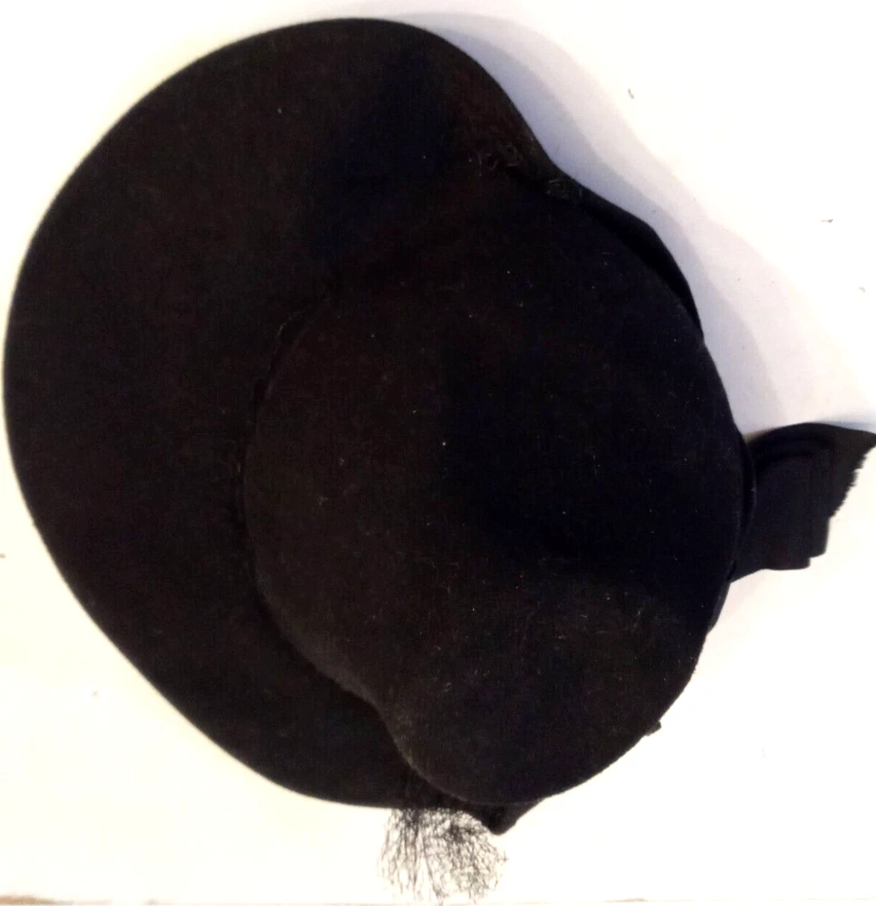 This Victorian Era Unicorne hat by Merrimac Hat Corp is a black wool hat featuring a grosgrain ribbon and bow accent. Nice Antique Condition, but most of the original netting appears to be missing. Made in the USA, this hat is perfect for historic or cosplay events, or parties and other special occasions The hat is crafted from felted 94% wool and 6% casein materials and has an elastic chin strap that still stretches. This beautiful unicorne hat is a stylish accessory for women looking for a unique addition to their historic clothing collection. Ships quick from a Smoke Free Home. Combined Shipping Discounts Available. Please use the add to cart button feature in the listings to shop my store and combine your purchases.