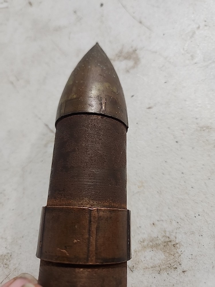 Antique Military Dummy Arrillery Shell? Trench Art? Neat Piece 5.5" Long. Condition is Used. Shipped with USPS Ground Advantage.