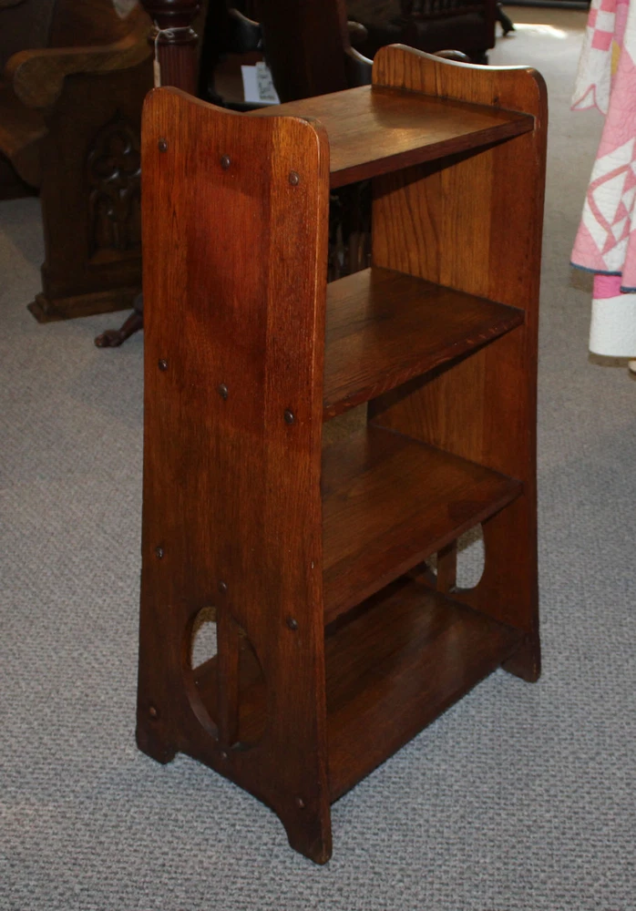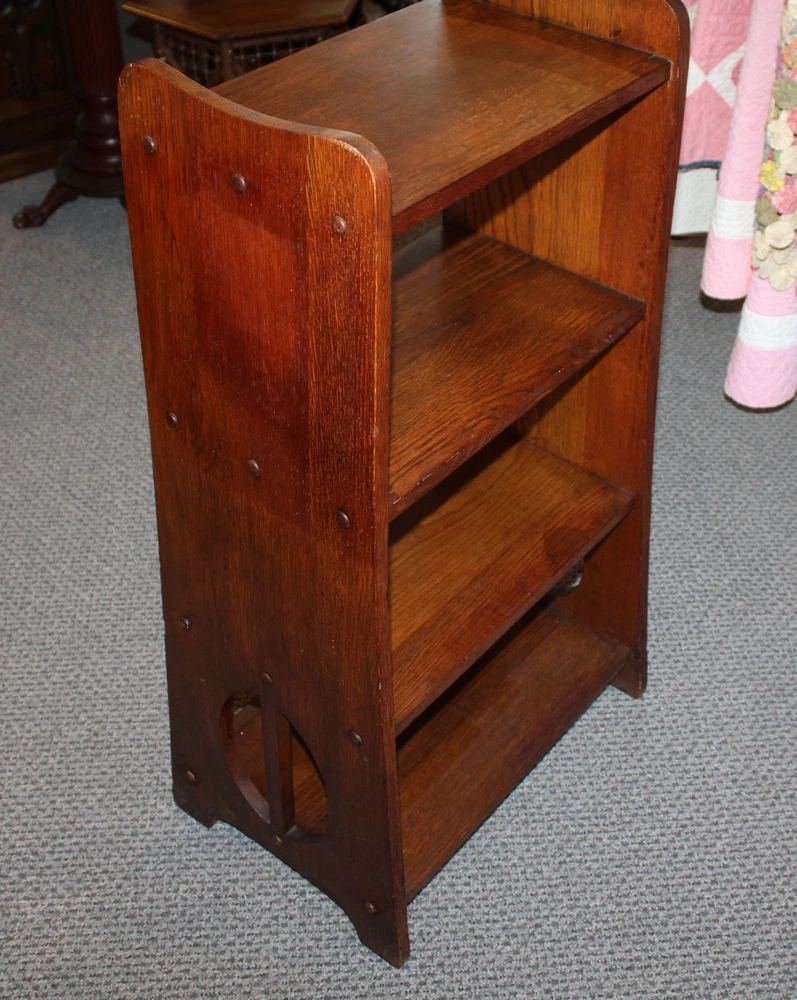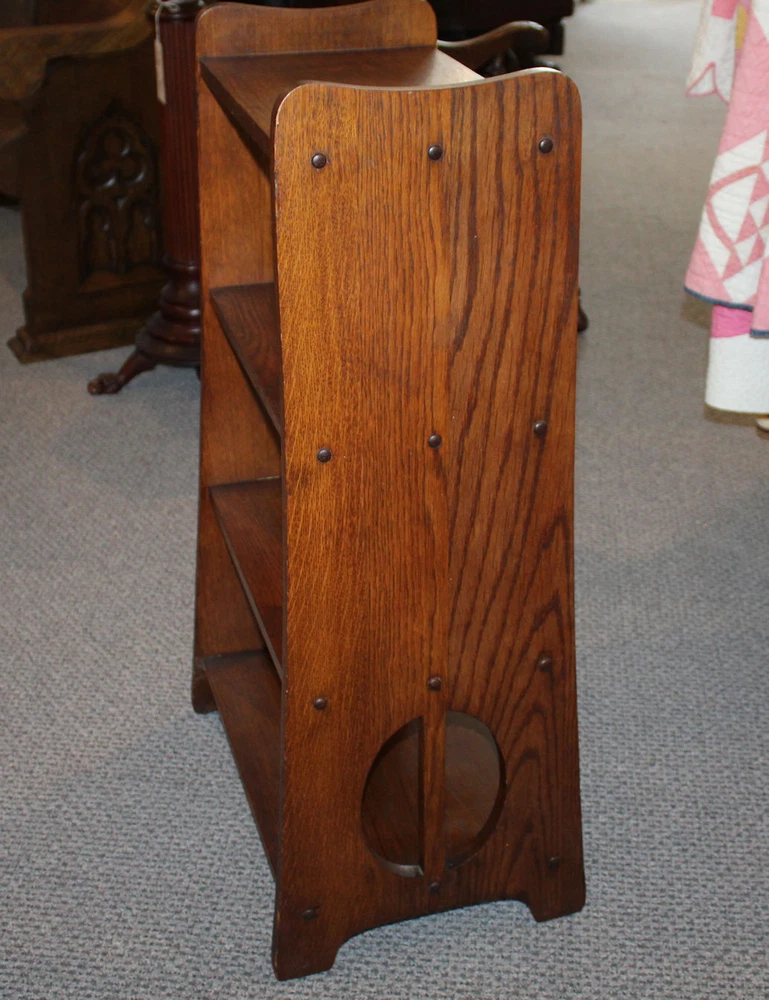 Bargain John's Antiques has been in business in the same location for 50 years. You can bid with confidence knowing that this item is guaranteed, well represented and supported by our experience. We specialize in American Antiques from 1840 to the 1920's. Quality that has been our mission statement since we began. We can ship anywhere throughout the United States and work hard to make international options available. If you have any questions, please contact us. Antique mission oak Limbert magazine stand, number 300 Limbert piece that features four shelves supported by slab sides with an oval cut-out design on the lower sides, original finish, signed and numbered, 16 1/2” wide x 10 3/4” deep x 37” high on the top of the stand, and at the base this piece is 20 1/4″ wide by 14 1/4″ deep. Good original condition. Please contact Bargain John's Antiques with any questions that you might have. We will ship items internationally, please call us for shipping rates. All shipping rates quoted on eBay are base rates to the continental United States. These rates are subject to change depending on the location and circumstances of the buyer. Contact us if you want a complete personalized quote. Nebraska residents pay 7% sales tax. Bargain John's Antiques Inc. is a family owned and operated Antique Store that has been in operation since 1968 in Lexington, Nebraska. We are actively buying and selling quality American Antiques of the period from 1840-1920. Our inventory will represent some of the finest antiques of this period. A place where you can deal and be assured that there are NO REPRODUCTIONS! Our shop is located just 2 miles north off of Interstate 80 in the Central part of the state. We are open Monday - Saturday 9:00 - 5:30 and Sunday 12:30 - 5:30 Central Standard Time. Bargain John?s Antiques wants satisfied customers, and we are going to work with you from beginning to end, we allow for returns, we just ask that you communicate your intentions upon receiving the item that you will be returning the item. Once item is returned your refund will be issued. Again, please contact us with any questions. We are offering several unique and top - quality items. Look thru our listed items to get a better look at the quality that we offer!