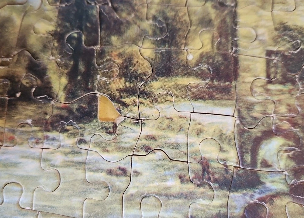 This antique 150 piece jigsaw puzzle was made by Royal Jig Saw Puzzles for Ottawa Baking Co. The Baking company gave them out as a promotion when you collected a certain number of bread wrappers. Approx 9" x 7" finished size and comes with it's original envelope. 4 pieces have a torn off missing corner as shown.